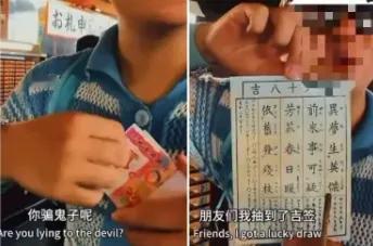 爱国可以,丢人就算了!一中国小伙在东京浅草寺,居然掏出冥币塞进功德箱,还嚷嚷日本签求不了中国人的幸福……同行朋友更绝,直接搭腔骗鬼子呢?好家伙,这是把低俗当流量密码了是吧? 视频一出,中日网友齐炸锅。有人怼他活人用冥币,怕不是给自己折寿。最绝的是他抽到的签文,“异梦生英傑,前来事可疑”,被调侃为神预言。不自重的人,好事也得黄。 浅草寺是东京千年古刹,每年接待超3000万人。有旅日华人一针见血!你可以不信,但别侮辱别人的文化,何况冥币在咱们这儿也是祭奠逝者的,这波纯属又蠢又坏!如今涩谷路口跳篮球舞,寺庙撒冥币……个别网红为博眼球,简直把全体中国游客的脸按地上摩擦。 签文最后那句依旧发残枝倒是应景,靠无底线炒作换来的流量,终归是竹篮打水。尊重二字,才是行走世界的通行证啊!