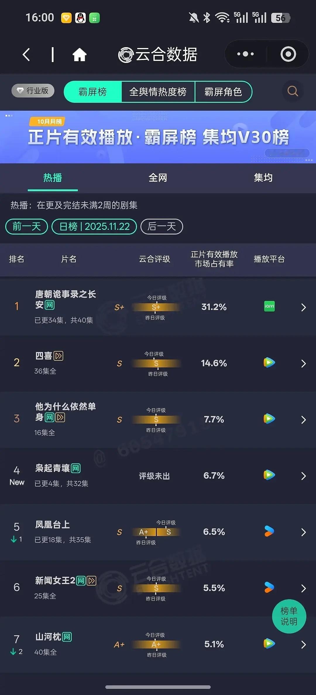 昨日云合,枭起青壤首日占比6.7%,播放量大概1200w左右,6点开播首更四集,这个成绩算高开吧?