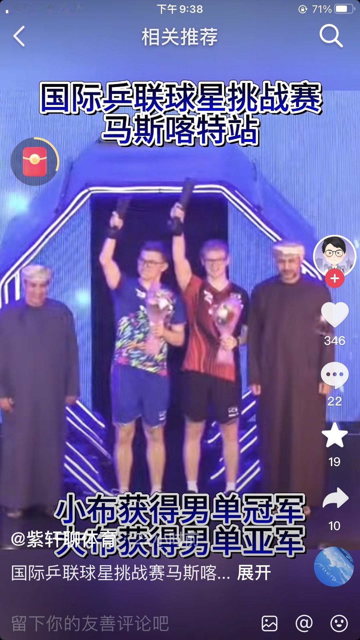 场上也是拼得你死我活的,场下同胞兄弟[尬笑][尬笑][尬笑]国际乒乓球明星挑战赛马斯喀特站大小勒布伦兄弟45分钟打满七局,而且有两局爆分,中间还轮流崩溃,哥哥还得一黄牌,还是弟弟笑到最后最后小布以11:6战胜哥哥大布。小布拿600积分,30万美金 这两兄弟都是爆脾气,今年年初小布就是赢了大布,大布把自己的小拇指砸断了,导致世界杯都退赛了。 场上拼得你死我活,可是回家是哥哥开车,弟弟坐后排刷抖音发朋友圈。反正谁赚钱了都是用来养家,肥水都没有流进外人田。父母最开心,2个宝贝拿奖金回家。 估计哥哥会把弟弟奖杯和自己的奖杯都拿回自己奖品柜。
