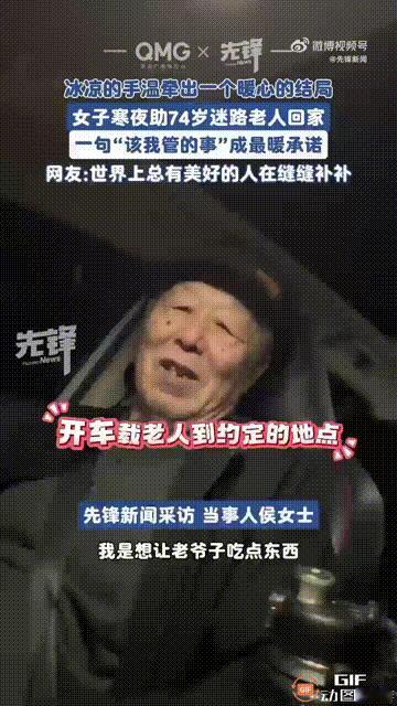 暖到心坎里了!河北石家庄一名女子晚上开车回家时,在国道路边遇到了一位74岁老人,老人本来也是骑着自行车回家,但却不小心迷路了,都不知道家的方向。 女子得知情况后,连忙为老人拨通了家人的电话,老人的女儿让女子帮忙把老人送到附近的派出所,然后打车接老人回家,女子表示没问题,既然遇到了就是“该我管的事”。 女子得知老人还没吃晚饭,而且外面的天气又冷,老人冻得直哆嗦,于是打算先带老人去饭店吃点热的食物,但刚到饭店,老人的女儿就打来了电话,表示老人的老伴急着见老人。 于是女子给老人买了点水果,然后将他送上车离开,事后女子表示,既然遇到了,那就必须得管,否则回家后,不得后悔死啊,相信每个人遇见了,都会这样做的。 网友看完这段视频,都觉得这名女子的举动真是太暖心了,现如今受到不良风气的影响,很多人遇到老人都不敢主动帮忙,但她却主动上前,及时地帮助了老人。 她不仅带老人去吃饭,还给老人买东西,就像是老人的女儿一样,对老人无微不至地照顾,可见她是个心中有大爱的人,对于需要帮助的人,她都会毫不犹豫地伸出援手。 相信这名女子的举动,会温暖老人很久,或许老人的记忆力不太好,但这份温暖他一定会记得,另外也希望老人的家人可以好好照顾他,尽量不要让老人一个人出门,以免发生意外。大家怎么看呢?