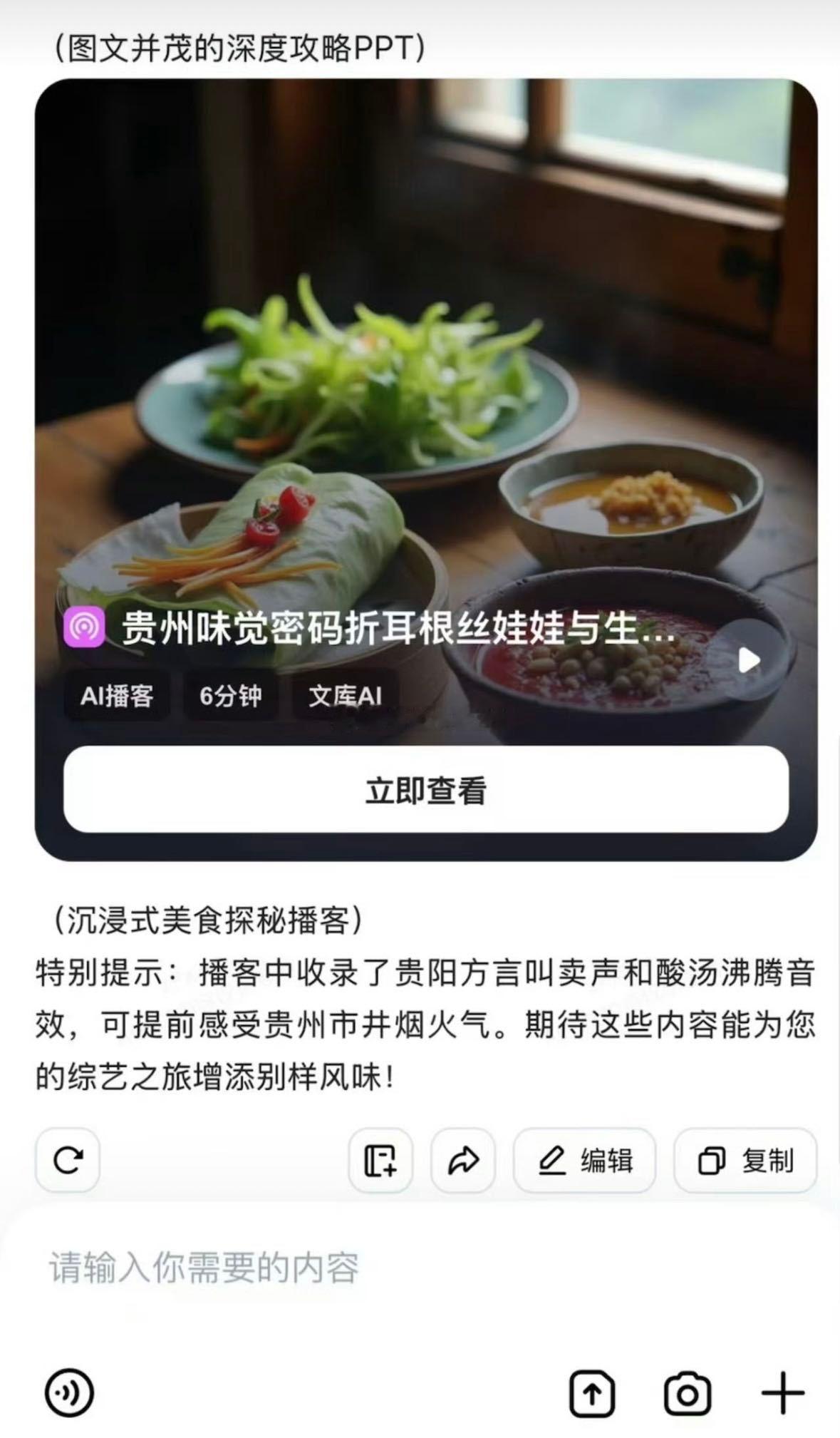 这个邵子恒也太会玩了吧!用文库GenFlow做的贵州美食攻略,PPT+播客全都有,边看边听超带感
