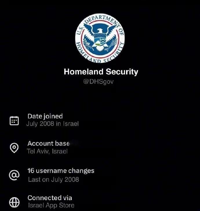 美国国土资源安全部IP地址显示在以色列。 X平台开始也显示IP地址了,结果令人诧异的是美国国土资源安全部IP地址竟然显示在以色列! 这就很符合网络上的阴谋论了,以色列控制了美国。 估计现在美国国内的阴谋论者一定会大呼证据确凿了!