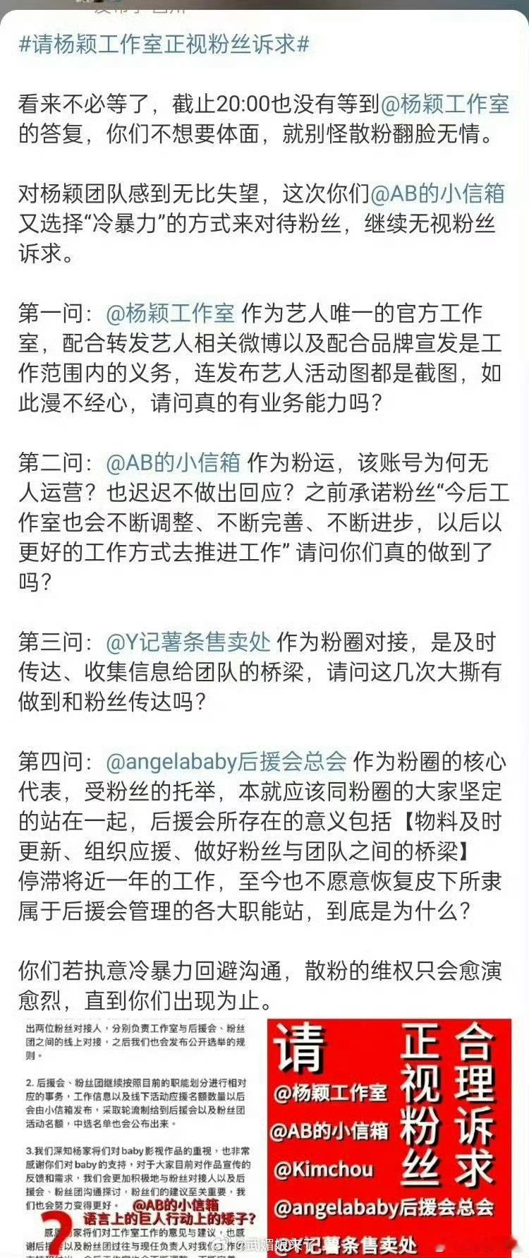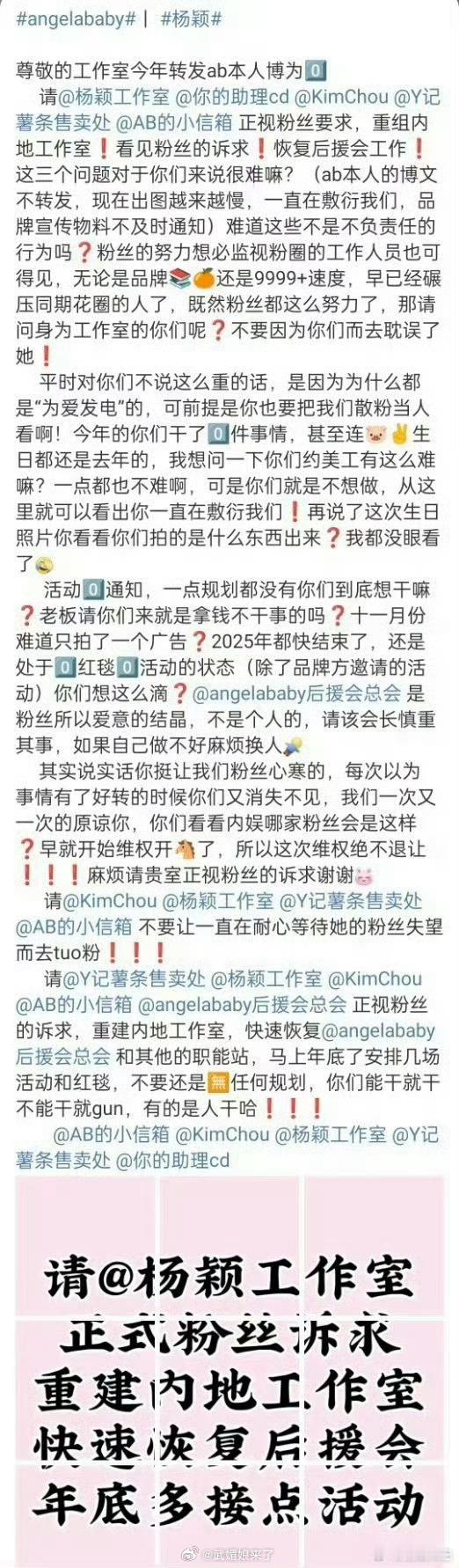 Angelababy粉丝发长文向工作室维权,要求工作室正视粉丝诉求