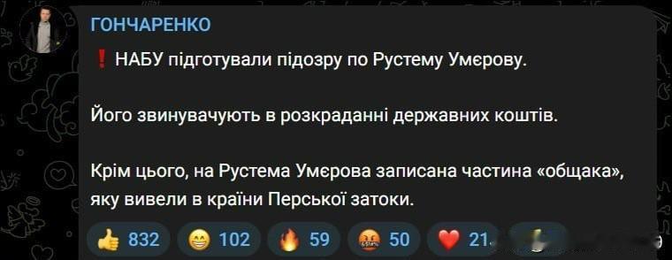 正在瑞士与美国,欧洲进行会谈的乌克兰代表团中的乌克兰前国防部长乌梅罗夫要摊上大事了。 乌克兰最高拉达议员贡恰连科发文表示,乌克兰国家反腐败局已经准备好对乌克兰国家安全与国防委员会主席、前乌克兰国防部长乌梅罗夫提前指控,罪名是:挪用公款以及将资金转移到海外。