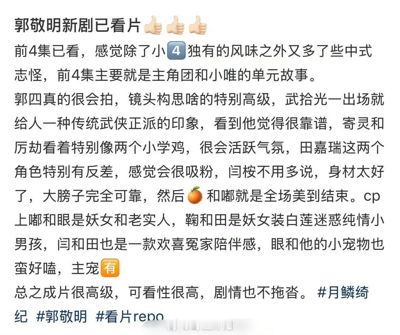 鞠婧祎、田嘉瑞、曾舜晞、陈都灵主演的《月鳞绮纪》看片repo来了,貌似感觉都还挺不错的啊,如果真的播出的话,你会想要去支持一下不?
