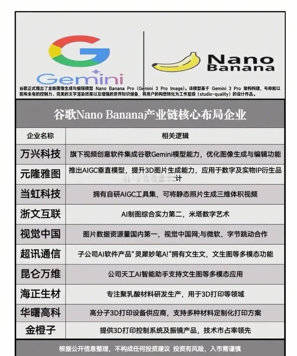 谷歌AI大模型概念龙头梳理!谷歌美股股价一度上涨5.8%,美股人气榜排名第三!近日谷歌发布新款大模型Gemini 3,该模型在性能上全面刷新多项行业纪录,同步推出配套开发平台并快速落地全生态,还引发行业和市场的强烈反响。中国上市公司与谷歌关联度较高的公司有哪些?蓝色光标:公司连续多年跻身全球传播集团前十,是谷歌全球超级合作伙伴,超80%业务联动广告生态。省广集团:中国广告行业的领先企业之一,是谷歌广告核心代理。光迅科技:光模块、光器件行业龙头,是谷歌OCS主要供应商。万兴科技:集成Gemini模型优化图像生成。理财有风险投资需谨慎,资料取材网络仅供参考。