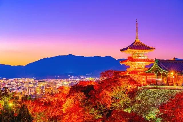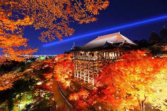 🍁🏯清水寺亮灯迎接秋夜观赏 京都标志性的清水寺于21日举行了灯光彩排,为
