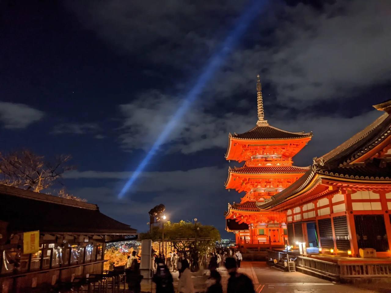 🍁🏯 清水寺亮灯迎接秋夜观赏 京都标志性的清水寺于21日举行了灯光彩排,为一年一度的秋季夜间观赏活动做准备。灯光璀璨的清水舞台与闪耀的红色枫叶交相辉映,将这座古都装点成一幅梦幻般的夜景。💎💎💎 大约1000棵树被温暖的橙色灯光点亮,而一道象征着观音菩萨慈悲的蓝色光束,则为现场增添了一丝神秘的气息。✨✨✨ 🍁🏯 Kiyomizu-dera Lights Up for Autumn Night Viewing Kyoto’s iconic Kiyomizu-dera Temple held a lighting rehearsal on the 21st ahead of its annual autumn night viewing event. The illuminated Kiyomizu Stage and glowing red maple leaves transformed the ancient capital into a magical night scene.💎💎💎 Around 1,000 trees were lit with warm orange lights, while a single blue beam—symbolizing the compassion of Kannon Bodhisattva—added a mystical touch to the atmosphere.✨✨✨