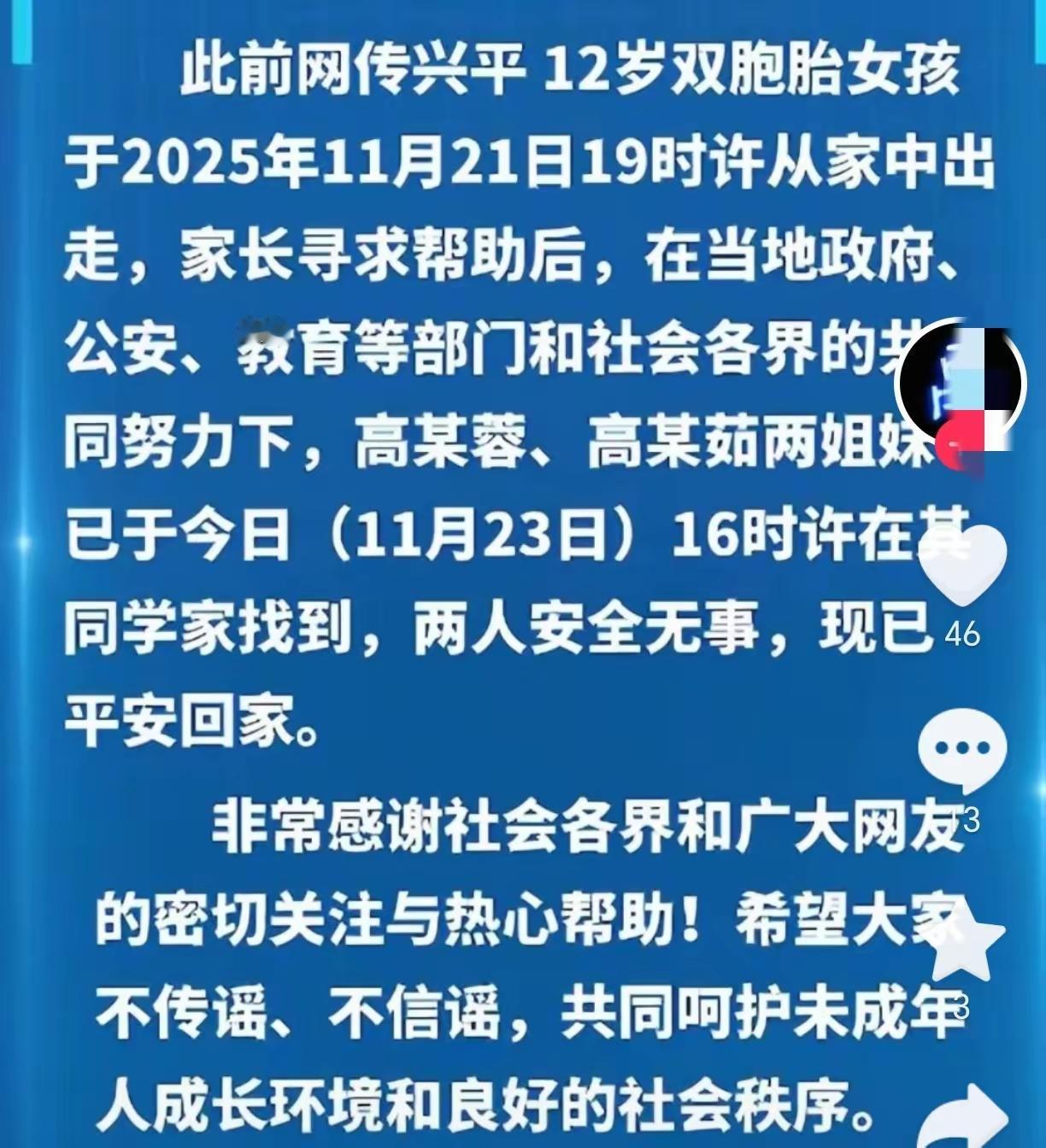 陕西咸阳丢失两女童已找到,因为怕挨打跑到同学家! 近日,一则关于陕西咸阳两名女童失踪的消息引发了广泛关注。令人欣慰的是,经过警方和社会各界的共同努力,这两名天真无邪的孩子终于安全归来。然而,这起事件背后所折射出的家庭与社会的深层次问题,却值得我们每一个人深思。 事情的起因令人心碎——原来,两个女童因为怕挨打,选择了逃到同学家避难。年幼的她们,本应在父母的呵护下无忧无虑,却在家庭的阴影下迷失了方向。这一幕,让我们不得不反问:家庭的关爱是否真的到位?父母的教育是否懂得尊重和理解孩子的心声?在这个快节奏、压力巨大的社会里,许多家长在忙碌和焦虑中忽略了孩子的心理需求,把惩罚当作教育的唯一手段,却忽视了爱的力量。 孩子的逃跑,不仅仅是一次简单的“躲避”,更像是他们心灵深处的一次呐喊。我们是否太容易把责任推给孩子的“调皮捣蛋”?其实,孩子的行为反映出家庭教育的缺失和沟通的断裂。每个孩子都渴望被理解、被尊重,而不是只知道畏惧和退缩。或许,这次事件的背后,是许多家庭共同面临的困境——缺乏耐心、缺乏沟通、缺乏理解。 更令人担忧的是,社会环境的影响也不容忽视。校园、邻里、网络……多元的社会环境对孩子的成长起着无形的影响。我们要问:什么样的社会氛围,才能让孩子在遇到困难时,敢于发声,勇于求助?而不是选择逃避或者走向危险的边缘? 这起事件虽已迎来圆满结局,但留给我们的思考远比表面的平静更深。作为社会的一份子,我们是否应该为下一代营造一个更健康、更有温度的成长环境?父母是否应该放下手机,放下焦虑,用心倾听孩子的心声?教育是否应该更多地注重爱的艺术,少一些惩罚的武器?只有这样,孩子们才能在阳光下健康成长,而不是在恐惧和阴影中迷失自己。 让我们共同反思,携手为每一个孩子打造一个充满关爱与理解的世界。因为,只有爱,才能成为他们最坚实的依靠。