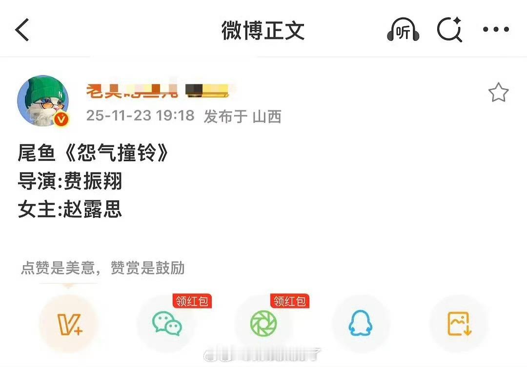 赵露思有可能明年春天就要进新组了。终于又要进组了吗?在传出演《怨气撞铃》???这个IP近期会重新拍吗? 赵露思许我耀眼实绩图🈶,在同期95🌹里算什么水平?我觉得🥩在许我耀眼的加持下,又不缺剧本~只能说优中择优罢了,其实也不用特别关心人家啥时候进组了。想不想进和能不能进是两回事哈哈哈 反正是她肉眼可见越来越好,蓄势待发强势回归