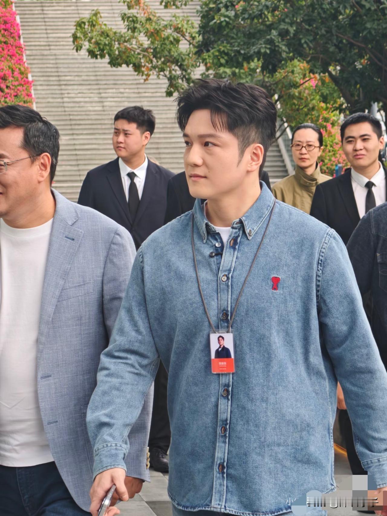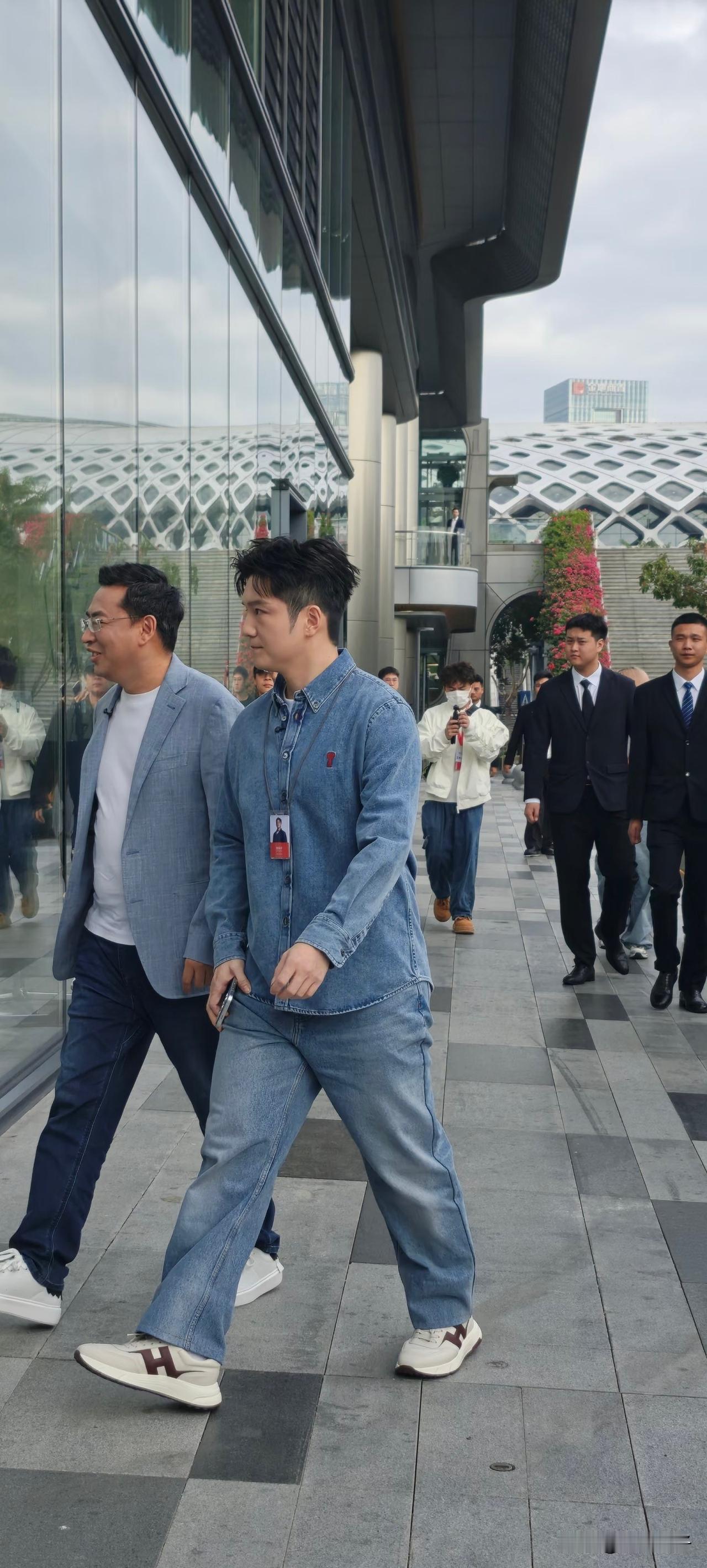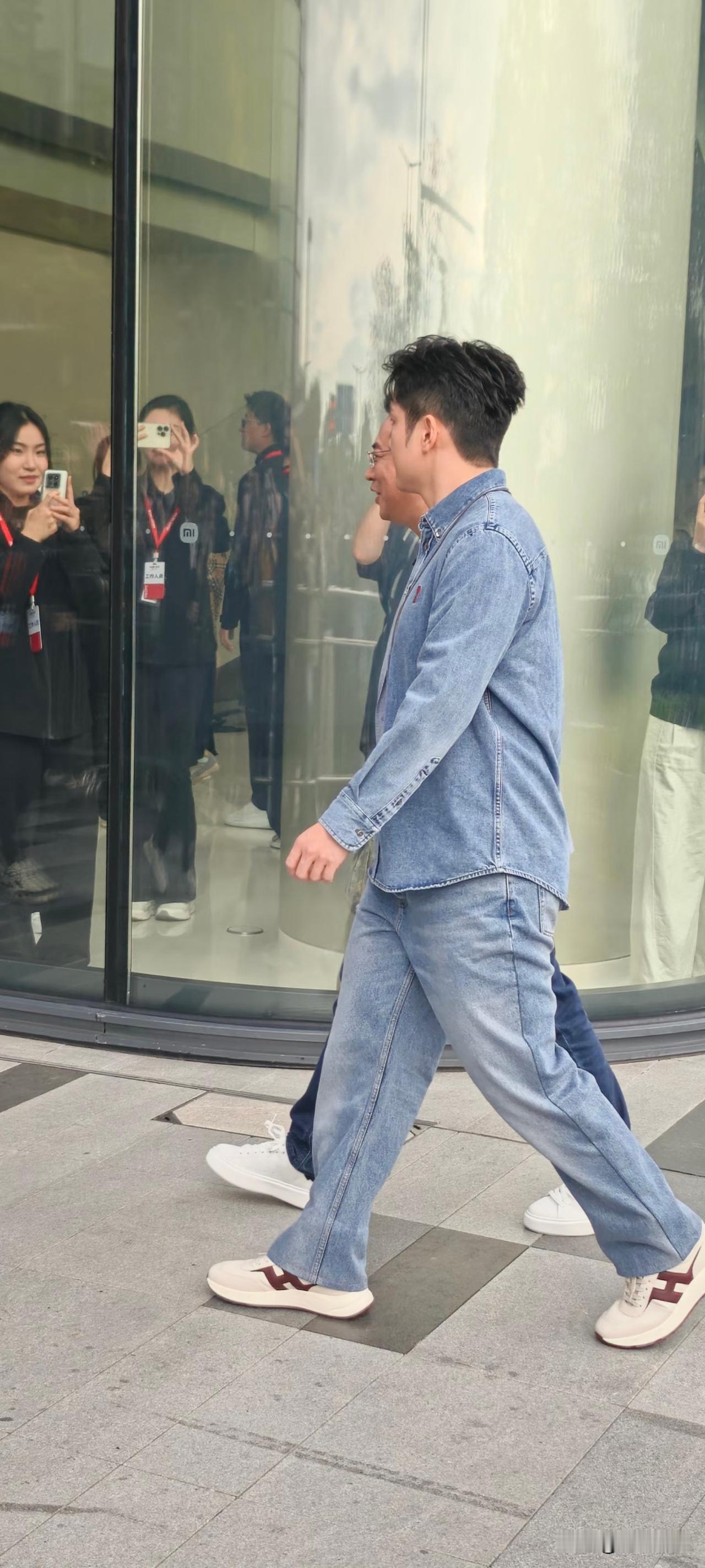 樊振东来了!樊振东来到小米大厦了。今天樊振东这个牛仔衬衫外套加牛仔裤系列太帅气了!时尚感满满! 今天这个露额头发型,也是星姐们的最爱。 这宽肩窄腰,这身材,太有型了! 从这个日常装扮来看,确实瘦了很多,这个角度看着高高瘦瘦的,太好了。 现场气氛非常热烈。持续跟进中。
