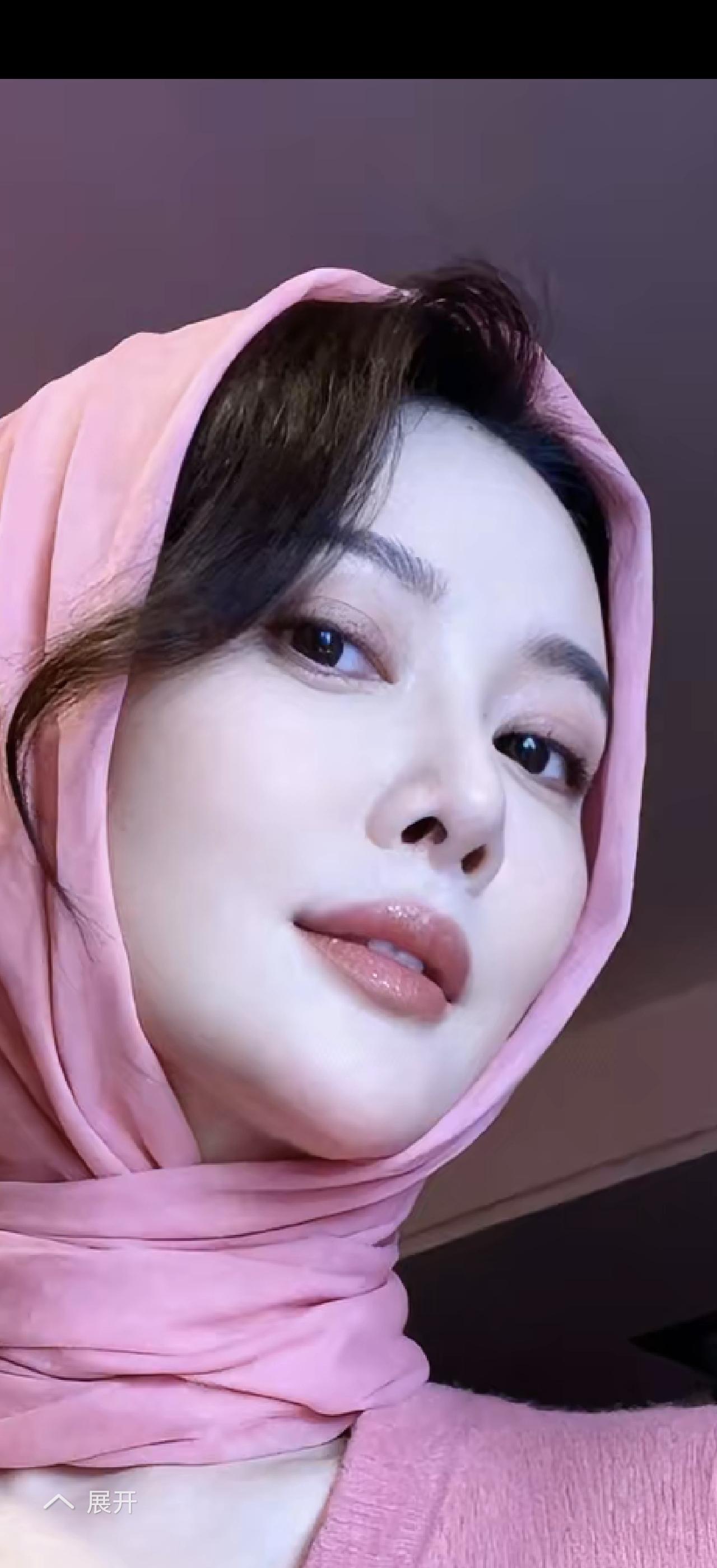 粉色头巾的甜美自拍,温柔又迷人!💖✨