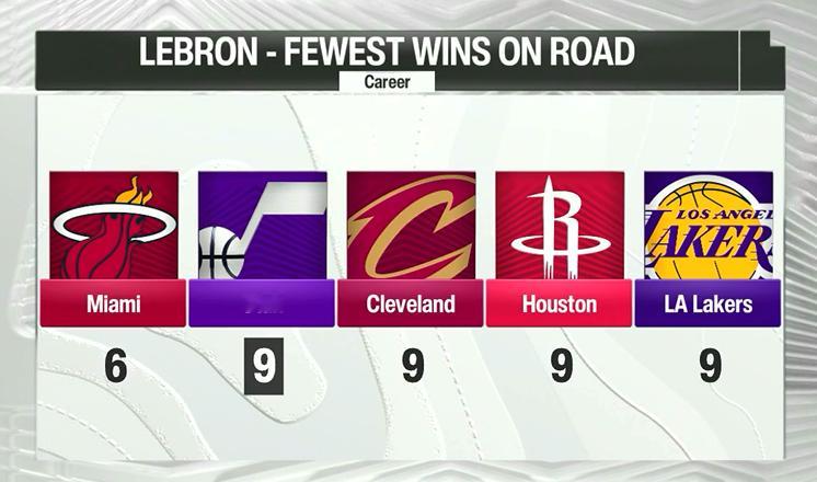 ▲我勒职业生涯对阵的球队,客场胜场数最少的几家