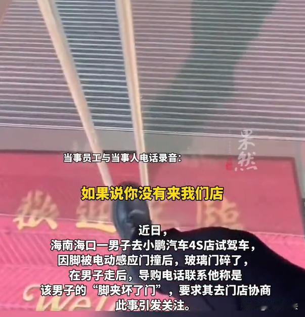 海口,一位网友走进一家汽车销售店,原本跟工作人员已经约定好,前来试驾车辆。但是过来时,网友在门口停车场看到,约定好的车辆已经被其他客户开走。网友转身准备走进大厅拿行李回家,谁知道电动大门感应出了问题,没有及时感应开门,反而将网友的脚给夹住了。夹住之后,大门似乎也存在部分损坏,工作人员非常生气,要求网友赔偿大门的损失费。 齐鲁壹点11月23日报道了这则新闻。到底是门给脚夹住了?还是脚将门夹坏了?这一点可真的是令人感到好笑。销售人员甚至说:“你不来咱门店看车,这大门也不会坏啊!” 一位网友最近想要买车,就在网上联系了一位销售人员,希望对方可以帮忙安排自己过来试驾。被告知试驾预约成功之后,网友如约来到汽车公司。 来到汽车公司,网友做好登记,一切准备就绪,跟着工作人员走进停车场附近,却发现预约的车型已经被安排给其他客户了。车子目前不在公司,被客户开走了。 网友当时也有些不悦,心想,这预约流程是否也有问题呢,也着实耽搁自己的时间。不过,这是火爆车型,网友也只能表示谅解。 没试驾成功,网友就准备回到展厅取走自己的行李。谁知道,刚走到大门口的时候,电动感应大门却跟失灵了一样,反常操作,不给网友开门,甚至夹住了网友的脚。 网友试图挣脱开来,但是大门反反复复,最后发出了“咔嚓”的声音,大门的角落碎落了一些碎片。 现场的工作人员看到了,匆忙赶过来,第一时间没有关注网友被夹的脚,而是心疼的查看碎掉的玻璃渣。声称,就是网友的脚给弄坏的。 本来没有试驾成功就很心烦了,现在门坏了,夹自己脚了,却反咬一口说是自己的原因。网友可真的气愤,当时就回家了。 谁知道,回家之后,网友遭遇了夺命连环call,汽车展厅的工作人员,开始不断的给这位网友打电话,一定要网友回到店里来赔偿大门损失费用。 甚至,工作人员还在店里叫嚣:“我们大门可没有夹坏你的脚,是你的脚夹坏了我们的大门!你不过来看车,我们的大门是不是就不会坏了呢?” 听到这话,网友立刻就打车来到涉事门店,当场选择报警。调取监控之后,发现确实大门发生感应异常,导致网友没有能及时走进来,甚至还夹住了网友的脚。 事后,网友将自己见证的视频给发布到网上,网友们都炸了,纷纷帮助这位看车的网友讲话。事情闹大了之后,汽车总部公司也赶紧连夜进行了处理。 如今,这家汽车店的客服人员已经作出了回应:当天就已经对涉事员工作出了顶格处理,同时也对门店的店长进行了处罚,对前来看车的网友也作出真诚的道歉。 另外,汽车公司也作出了承诺:后期会对销售人员进行统一培训,合理管理好门店,防止这样的事情再次发生。 1.汽车门店预约好试驾车辆,但是客户前来,却发现车辆已经被其他客户给开走了,这是否存在违背诚信的原则? 根据《消费者权益保护法》规定,如果门店跟客户已经形成有效的合同,单方面取消试驾可能构成违约,需要承担相应责任。虽然没有书面确认,诚信原则是店家经营的根本,需要保障好预约客户的权益,临时安排其他客户试驾属于管理失职,损害客户信任。 作为门店管理者,应该合理安排前来试驾客户的时间,而不是随意单方面改约,让客户落空。汽车门店作为经营者,需要优先保障预约客户的权益,重建门店管理系统,避免再次出现这类尴尬问题。 2.汽车门店的电动大门因为感应问题,失灵之后将客户的脚给夹住,但是事后工作人员却反咬一口,说是客户的脚将门给就夹坏,还要客户作出赔偿,门店工作人员的行为是否合理呢? 根据《民典法》规定,销售门店作为经营场所,需要保障消费者的合法权益。公司内部电动感应门店作为门店的设施,门店需要保障大门的安全运行。如果因为感应失灵导致客户受伤,门店需要承担全部责任。 这家汽车公司门店的工作人员,其行为非常不合理,门店大门夹到客户的脚,他们却反咬一口声称是客户的责任,此举违背了基本事实。门店工作人员的行为缺乏法律依据,并且违反了服务规范,涉事员工理应被追责。 看完这则案例,面对这样的尴尬事件,如果大家遇到了会怎么去做呢?