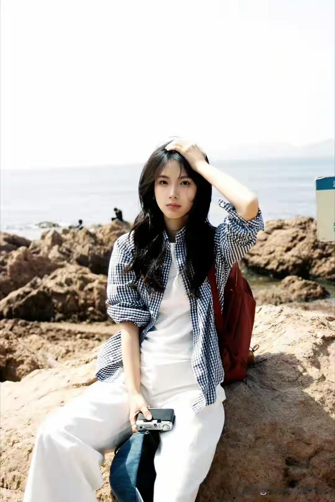 海边少女,静坐岩石,海风轻拂,心情舒畅。微胖的女生怎么穿搭才可以遮肉? 连衣裙的搭配如何才能完美?