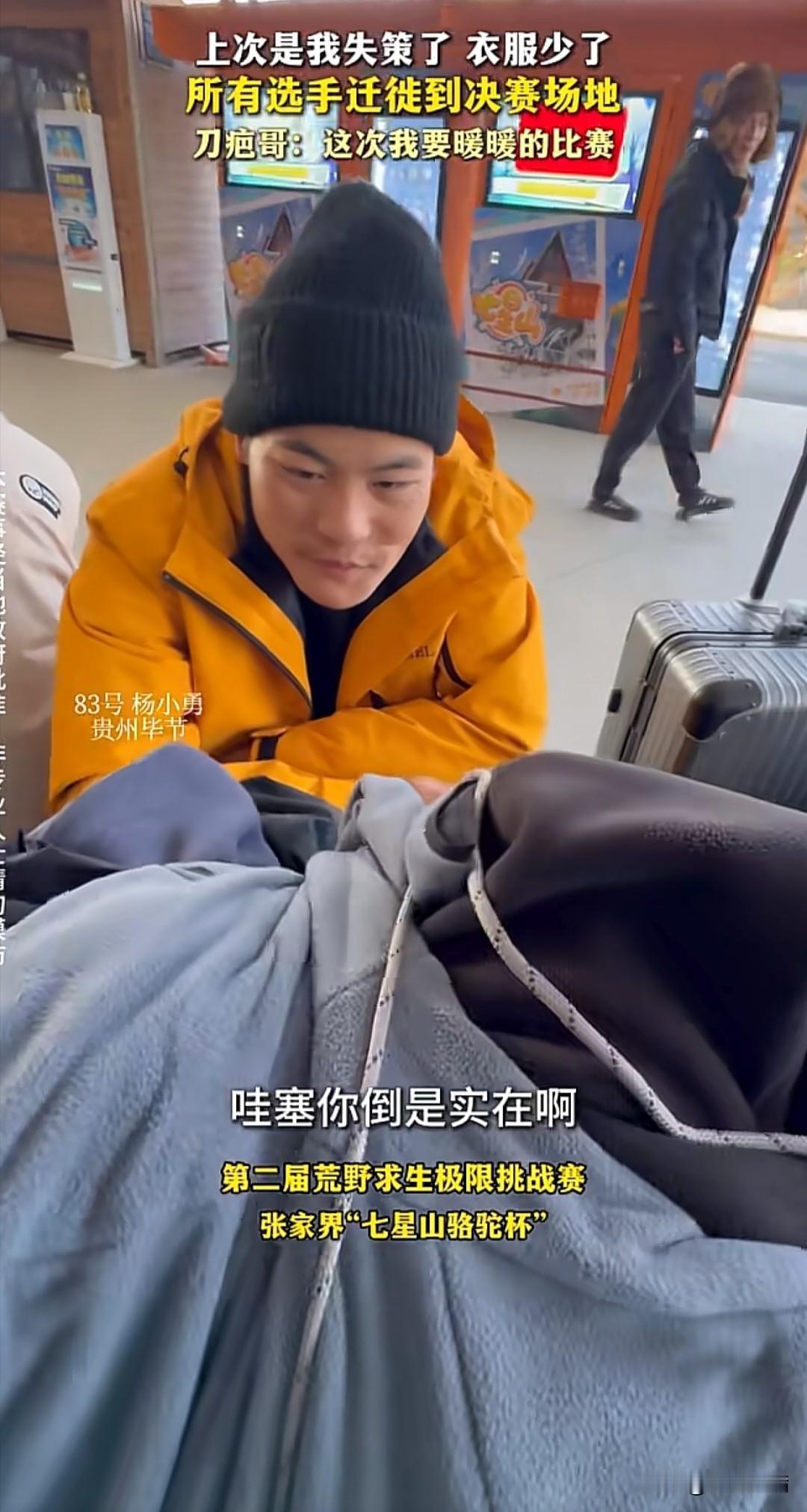 不愧是刀疤哥,人狠话不多,别人都是大袋小袋的,他倒好把衣服用绳子直接一捆,往桌上一放,这就是我的装备,简简单单,一目了然。 这才是荒野求生应该有的态度,我哥就是凭实力说话,这次准备也是十分充足,十分有信心,希望他能取得好成绩。 (来源于老六荒野)