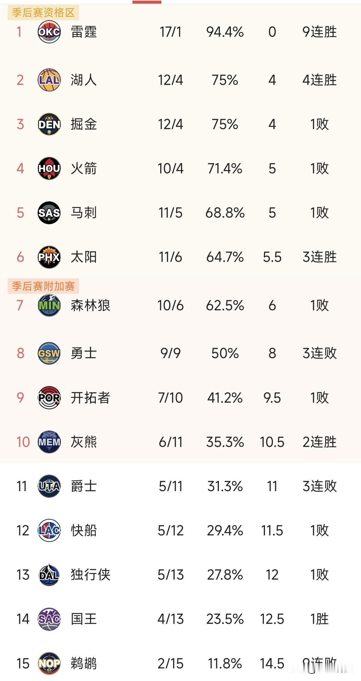 雷霆九连胜已经领先西部第二湖人四个胜场了,很多网友觉得本赛季雷霆有机会打破勇士的73胜,今年的西部真的很难说,感觉都在全员健康情况下还是雷霆和掘金有机会拿冠军,只要不“跨栏”和废人情况下,其他球队真的没啥机会。