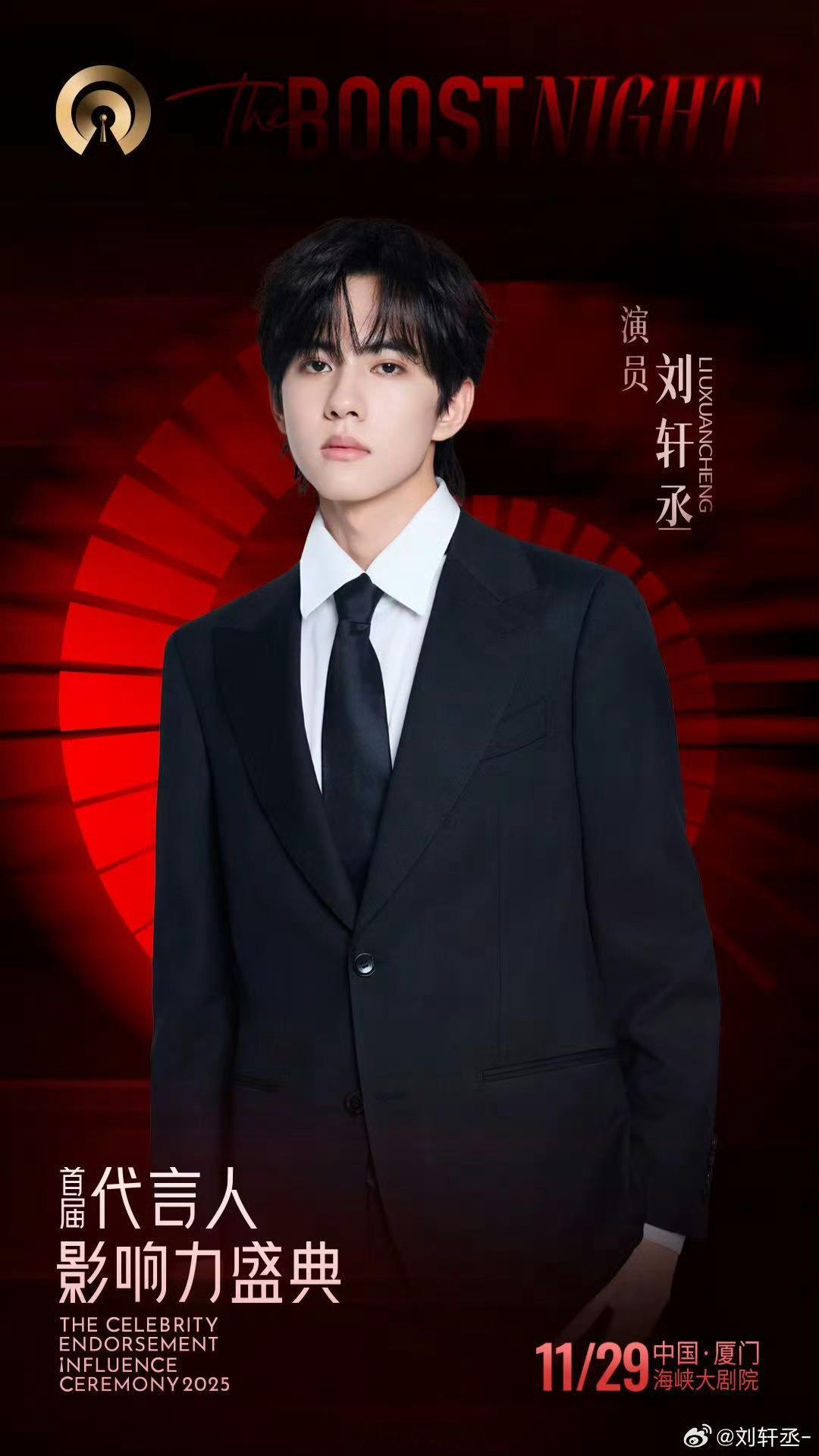 刘轩丞正式官宣参加首届代言人影响力盛典,1129期待红毯惊艳亮相