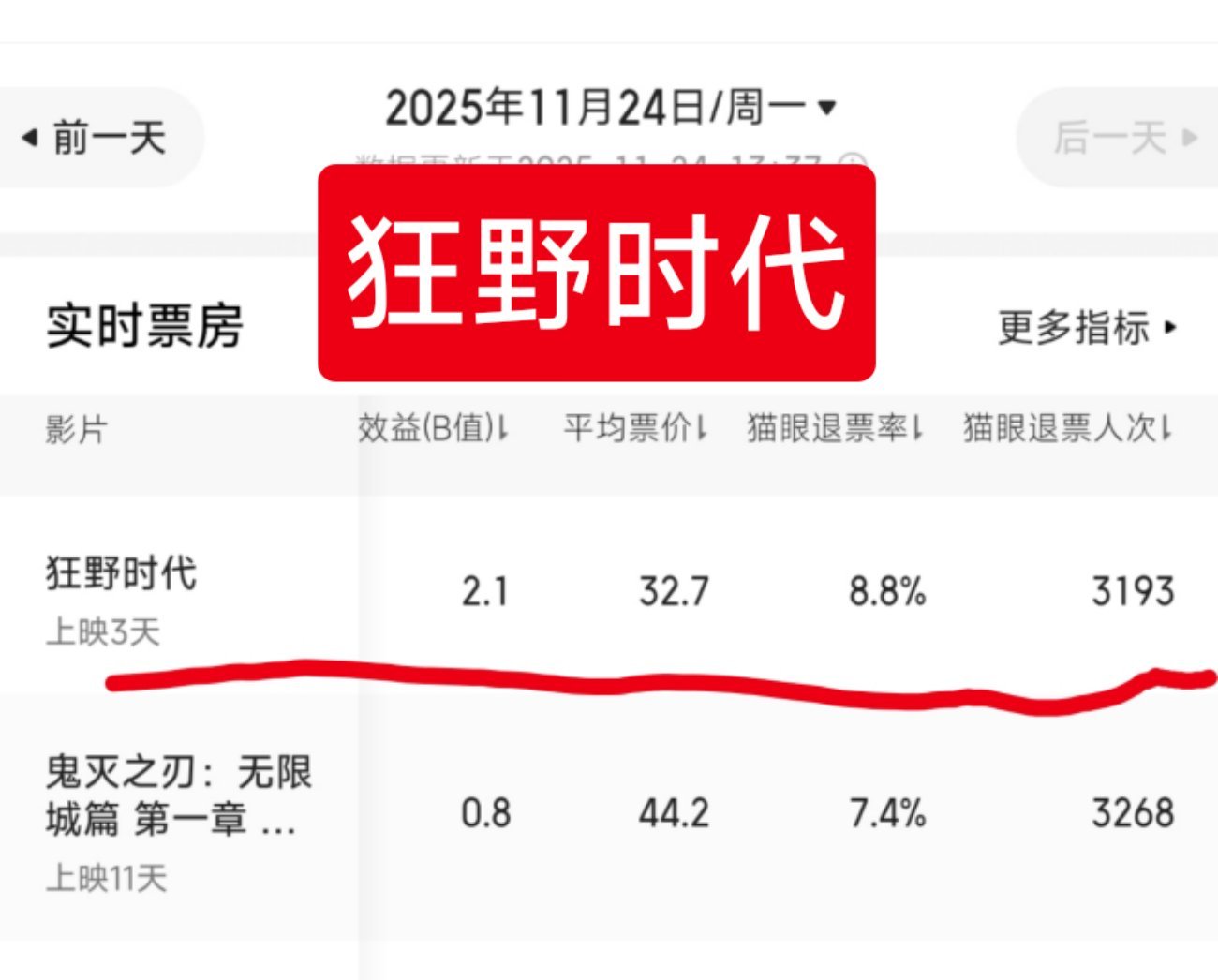 易烊千玺主演《狂野时代》的退票率VS朱一龙主演《消失的她》的退票率。(吓一跳)