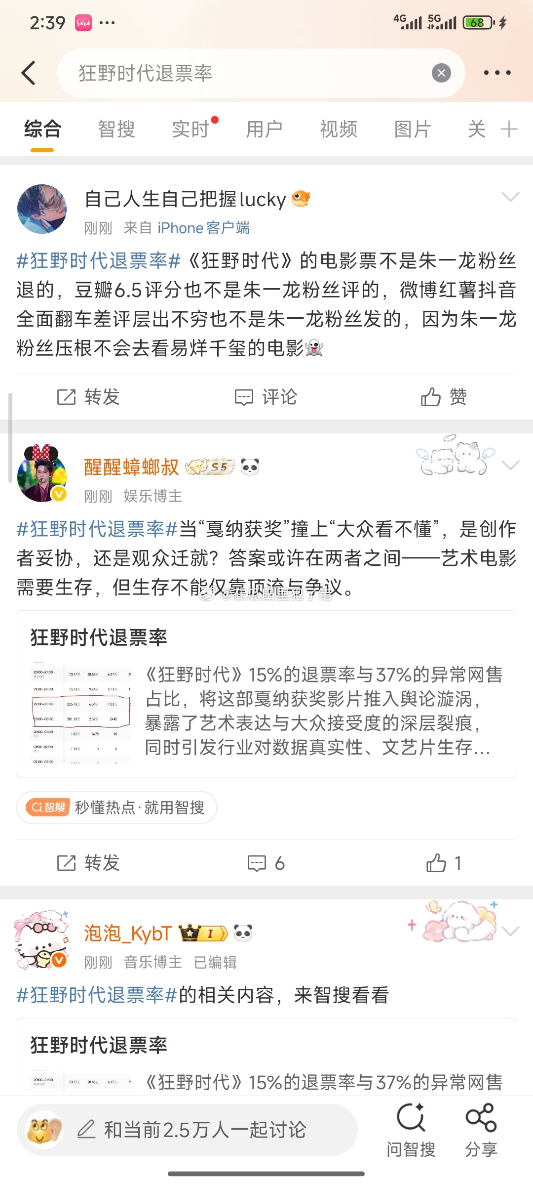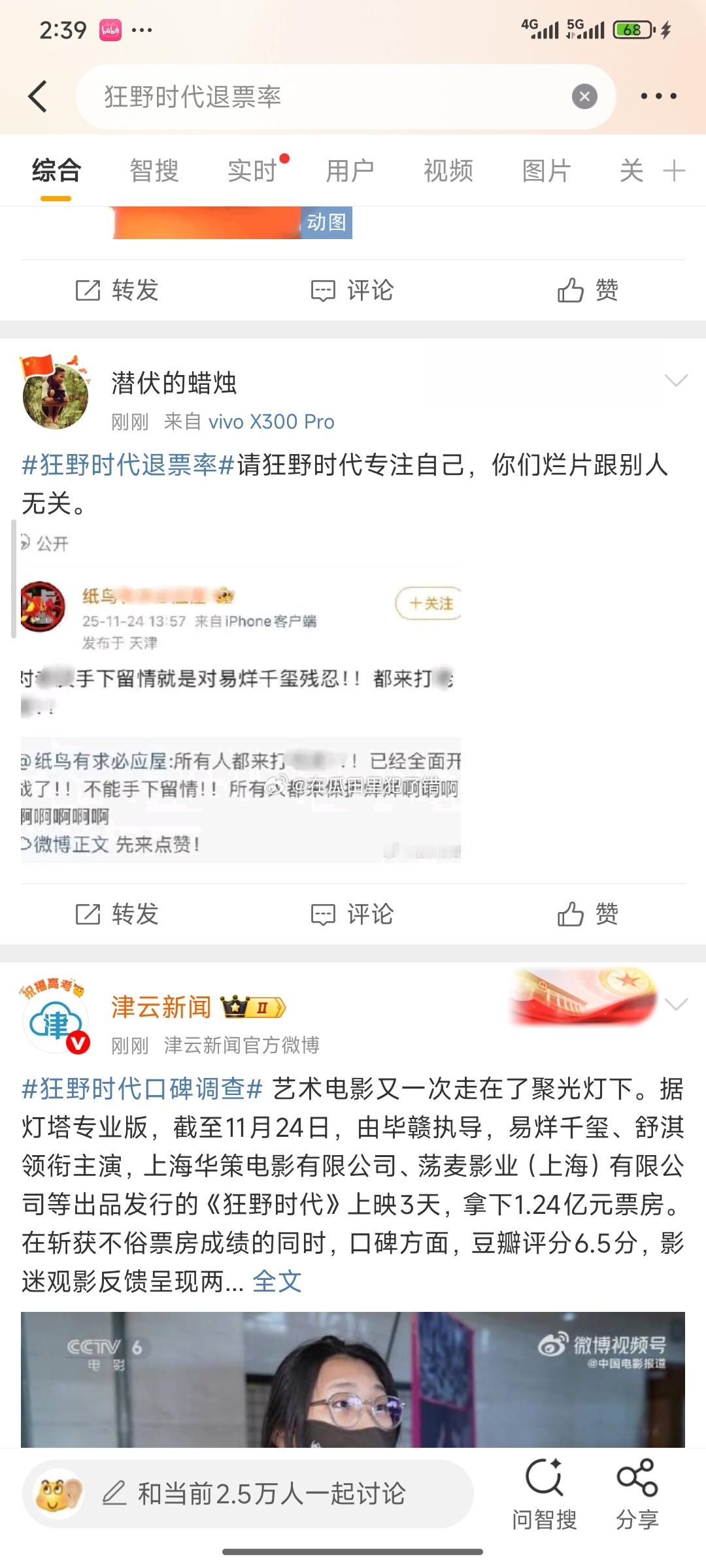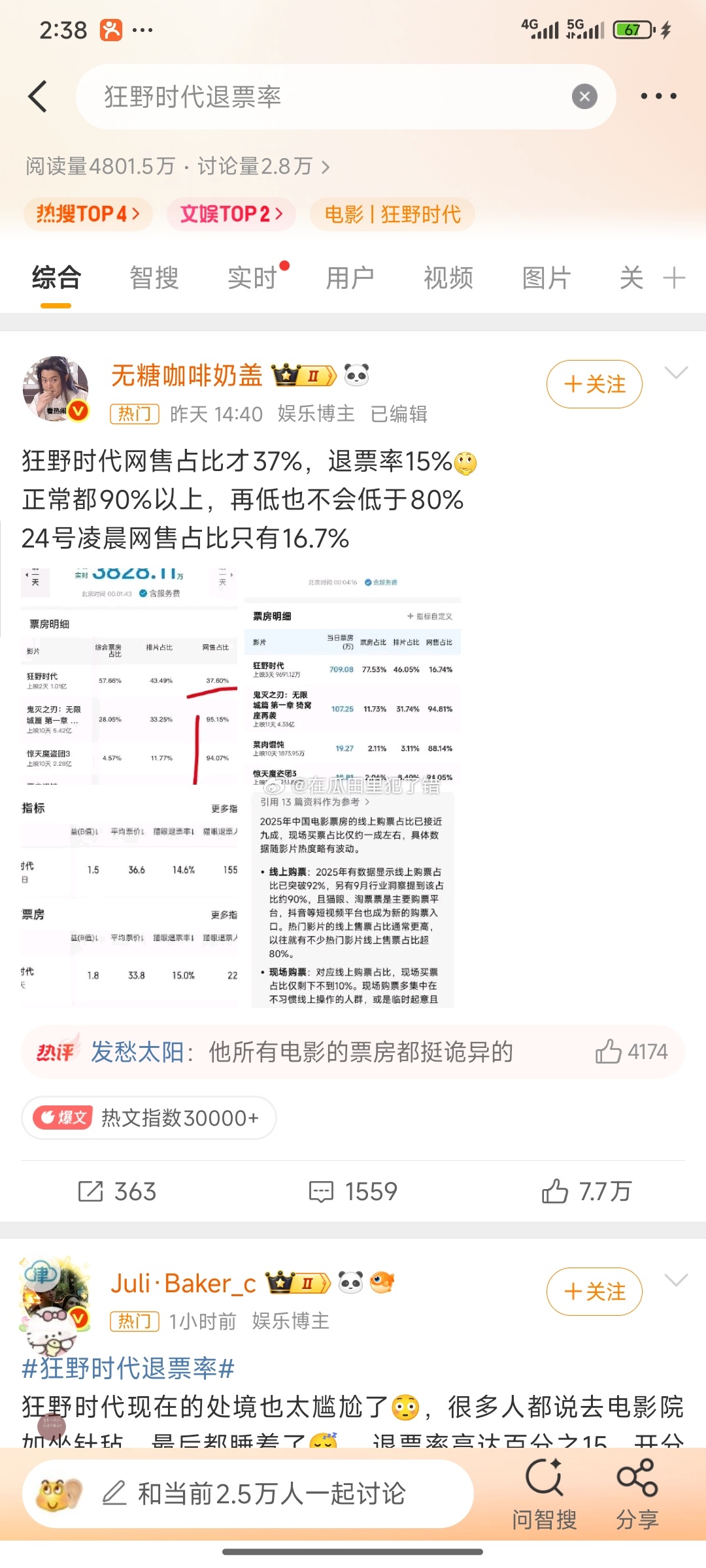 朱一龙《负负得正》与易烊千玺《狂野时代》的退票率成为热议焦点,网传前者退票率28