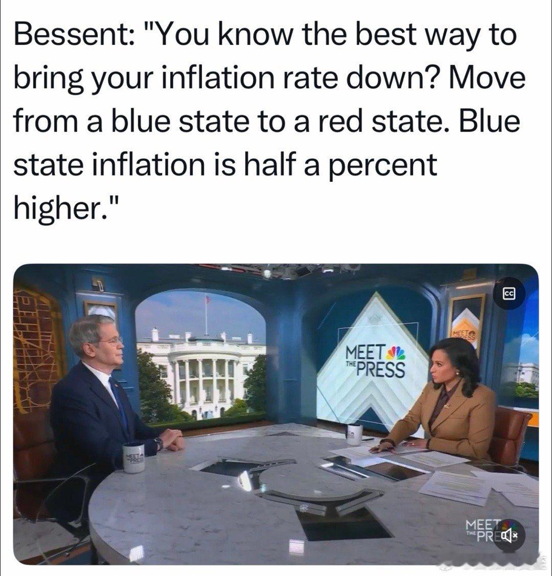 财长:降通胀最好的办法,是从蓝州搬到红州,通胀能少0.5%