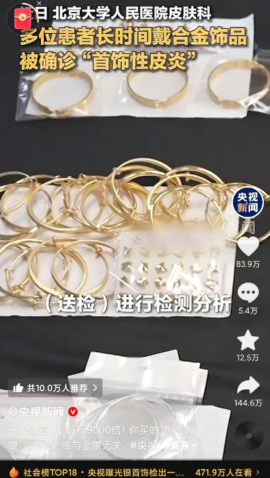 终于有人说实话了! 央视新闻记者在20家商铺里买了21件饰品,万万没想到,不但成分造假,一级致癌物竟超标9000倍,镀金镀银的厚度也都没有达到标准,标准要求是0.5微米,实际上则是0.03微米。 记者在广州批发市场里买的一副名字是s925的银耳钉,结果检测出来不仅不是银,还镉元素超标,竟然达到了92%,更可怕的是,镉就是致癌物。 怪不得我买的饰品,明明写的是925银,但是戴了一段时间耳朵就痒的受不了,一直红红的,现在都不敢戴那些耳环了。 以前真的特别喜欢这种饰品,每次上学都要买好几对,买的时候也并不便宜,但是他们总是坏的很快,戴着也不舒服,后来就再也不戴了。 罚的低,管的轻,抓的少,鱼目混珠,名叫“0添加”“s925银” 钢印,检测报告,合格证书,只要是经人手做的,就可以作假。 所以现在一些人莫名的觉得不舒服,头晕,流鼻血,差一堆还查不出来,实际上是身边的东西在作祟