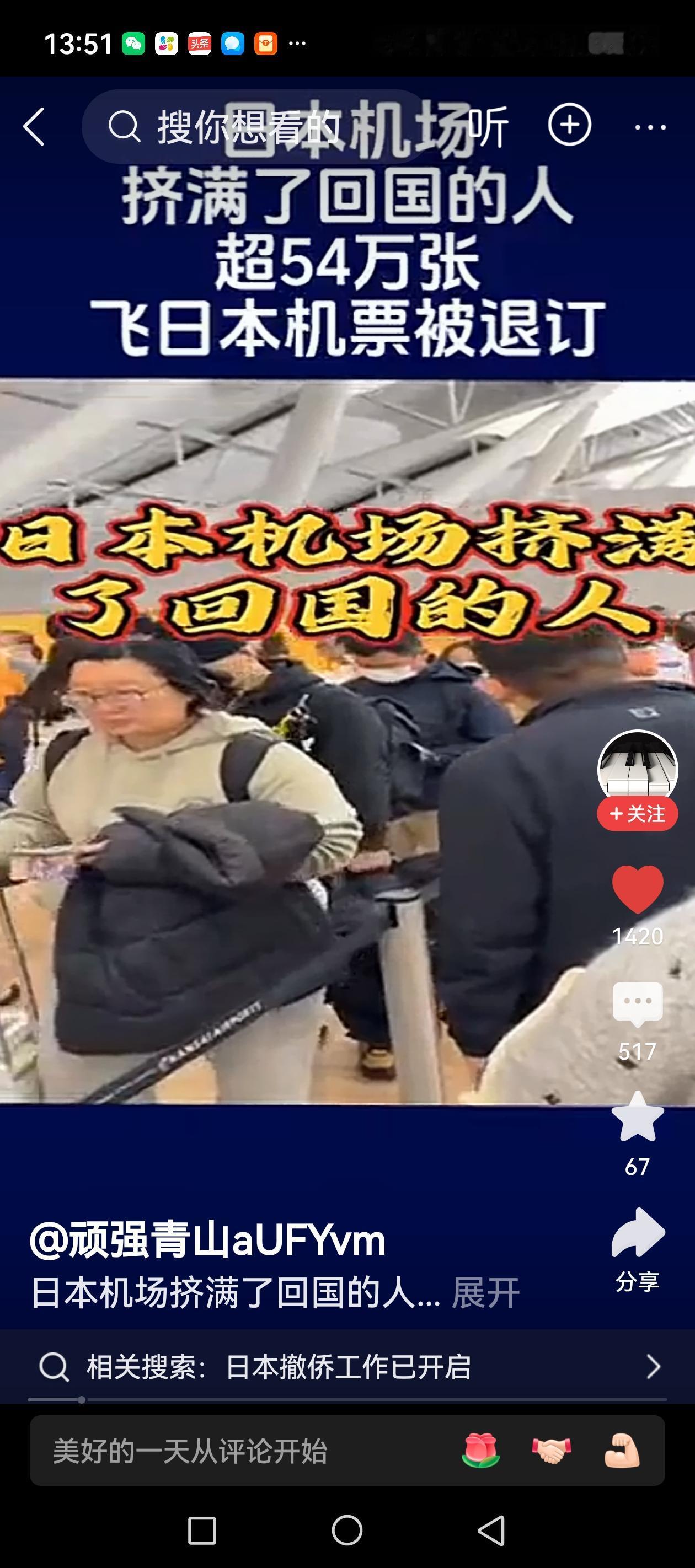 12条中日航线取消全部航班,日本机场挤满了回国的人群,这与前几日个别账号所称仍有大批游客前往日本明显不符。国人还是有自己的判断力的,谁也不会不顾国家的提醒,前去冒险。在这次中日之间因为高市早苗涉台海错误言论也引发的斗争中,让更多的人们对二战历史和战后国际秩序有了更清晰的认识。相信,胜利永远是在正义的一方!
