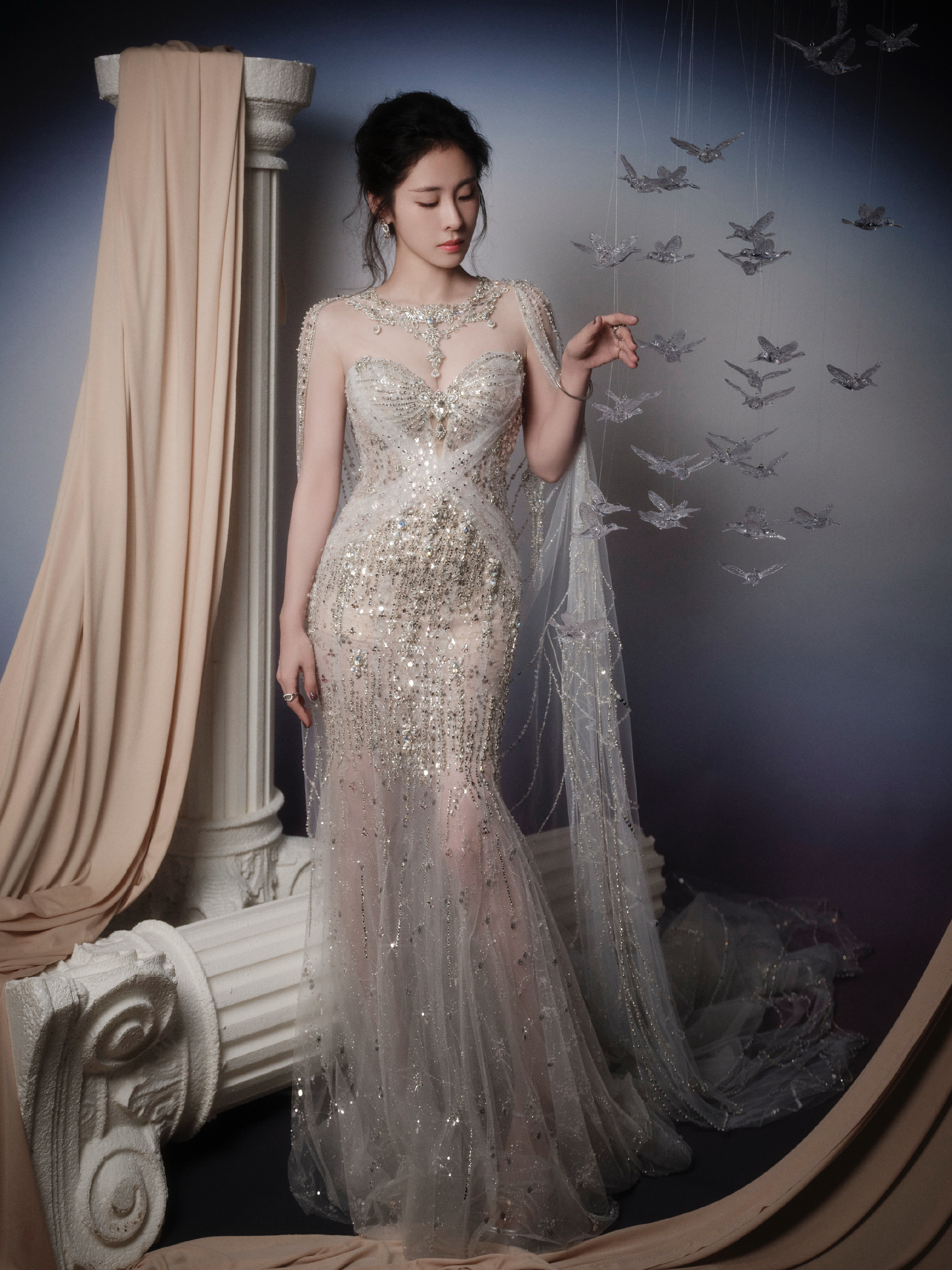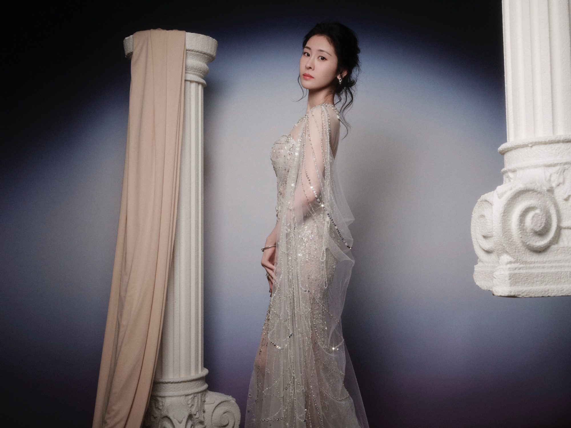 张碧晨秋日怦然心动:细钻纱裙,邂逅浪漫