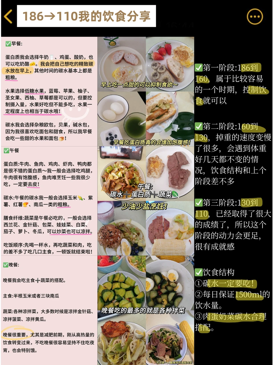 ➡饮食:①碳水后置②土豆循环法,精碳换成土豆③主食+蛋白质+蔬菜=2:3:5比例