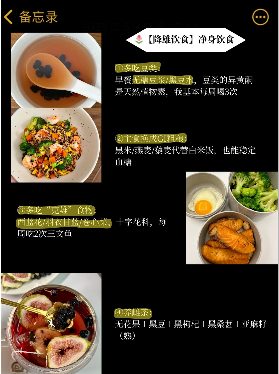 ①多吃豆类:早餐无糖豆浆/黑豆水,豆类的异黄酮是天然植物素,我基本每周喝三次