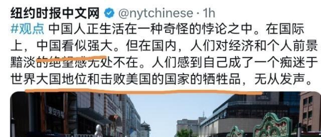 纽约时报称,“中国人生活在一种奇怪的悖论中,在国际上中国看似强大, 但在国内,人们对经济和个人前景暗淡的绝望感无处不在,人们感到自己成了一个痴迷于世界大国地位和击败美国的国家牺牲品,无从发声。”老实说,这一段话表面上看似乎还挺有道理,但仔细分析一下就知道,完全是舆论战的拙劣手段。 2025年11月13日,《纽约时报》观点版发了一篇题为《中国人今天生活在一种奇怪的悖论中》的文章,作者是个自称长期在北京生活的自由撰稿人。文章一上来就说中国人在国际上看着强势,但国内对经济和个人前景的绝望感无处不在,大家觉得自己成了国家痴迷大国地位的牺牲品,还无处发声。这篇文章很快被海外一些媒体转载,标题直接改成更耸人听闻的版本,明显想放大负面效果。 作者在文中交代自己在北京租房住,每天被附近小学的升旗声吵醒,用这些日常细节来衬托所谓爱国氛围下的内心疲惫。文章还说采访了不少出租车司机、白领和老板,大家私下抱怨工作不稳、房价高,但都不愿具名。整篇两千多字,配了几张北京街头照片,上线当天就冲上网站热点。传播路径很清楚,先英文版,几小时后中文翻译推送,套路一看就懂。 这篇文章的核心论调就是把中国国际地位上升跟老百姓生活压力硬掰成对立面,说国家追求全球影响力让普通人付出代价。这种把戏不是头一回了,西方媒体爱用这招制造分裂,勾着大家争“国家重要还是个人重要”,不管吵成啥,只要内部乱了,他们就赢了。 真实情况完全不是那样。中国人存钱多、花钱也狠,这两件事根本不矛盾。上半年居民存款新增17.94万亿,有人马上解读成不敢消费、对未来没信心。可同一时期社会消费品零售总额达到24.5458万亿,同比增长5%,二季度还比一季度快了0.8个百分点。这说明啥?存钱是因为有安全垫,花钱是因为有盼头,两不误。 网上购物增速更高,保持两位数增长。奢侈品销售也没掉链子,该打折时照样抢,该全款时照样刷。年轻人下班点外卖、买新款手机、订机票旅游,手里宽裕得很。要是真像文章说的那样绝望,谁会一边捂钱包一边大笔消费?数据不会撒谎,老百姓的购物车最诚实。 民生保障这块更硬核。“十四五”以来基本医保覆盖率稳在95%以上,2024年跨省异地就医直接结算就惠及2.38亿人次,减少垫付1947亿元,比前一年增长不少。这意味着在外打工的、退休回老家的、孩子在外地上学的,看病都不用先掏腰包跑断腿,系统一联网,钱直接到账。 现在全国1.9亿老人加入长期护理保险,95%以上的村卫生室支持医保刷卡。农村老人拿药、城市白领突发病,费用实时结算,省下的不光是钱,还有时间和心力。这些实打实的政策落地,比外媒空口白话强一万倍。 发声渠道从来没堵过。医保目录调整前,国家医保局官网和App公开征意见,留言成千上万,很多直接改政策。去年有人吐槽罕见病药贵,没几个月谈判结果出来,几十种药降价一半多。小区加电梯、公交改线路,这些事在政务平台提一句,很快就有人上门核实、贴方案。 社交媒体、政务热线、社区留言板,到处都能说事,说了还有回音。这哪是文章里讲的“无处发声”?纯粹睁眼说瞎话,故意忽略中国老百姓实实在在的参与感。 国家强大从来不是空壳子,它直接变成老百姓兜里的实惠。航母编队护航商船,在海外挣钱的中国人更安全。高铁修到山里,农民多条致富路。北斗导航用在共享单车上,省时省力。人工智能优化医疗影像,县级医院诊断更快更准。 “十四五”期间400多种新药快速进医保,没有国家在科研和产业上的持续投入,这些救命药哪来这么快降价?国家实力上去了,技术转化到民生才这么高效。 反观美国那边,医疗费用高到很多人直接放弃治疗,今年数据还是几百万人看不起病。自己家门口一堆问题,却跑来指责中国老百姓当了牺牲品,这双标玩得太溜了。某些西方媒体就是见不得别人好,年年换个马甲炒这套冷饭。 他们知道硬碰硬打不过,就搞软刀子,想让中国人自己怀疑自己。可惜这招早过时了。现在中国人看问题清楚得很:存款多是因为底气足,消费旺是因为有希望,发声多是因为渠道通。 国家强大和个人幸福从来不是二选一,而是互相成就。航母、高铁、航天、北斗,这些大国重器最后都落脚到老百姓的医保本、手机支付、社区医院上。谁也别想把这两件事拆开。