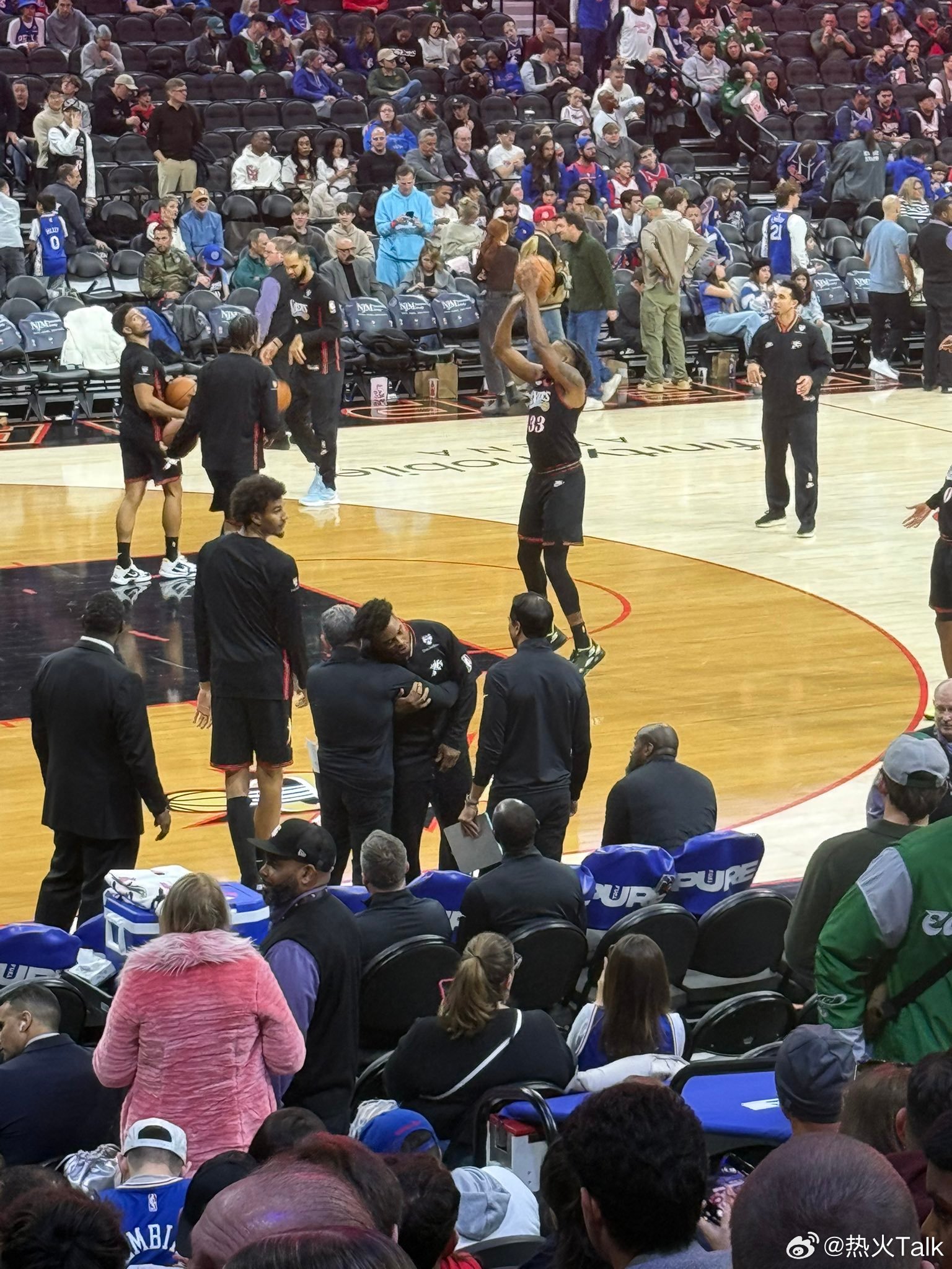 忽略掉的一个小细节,热火对阵76人比赛中场休息时间,洛瑞跑过来和热火的教练组成员拥抱致意,热火永远的小钢炮