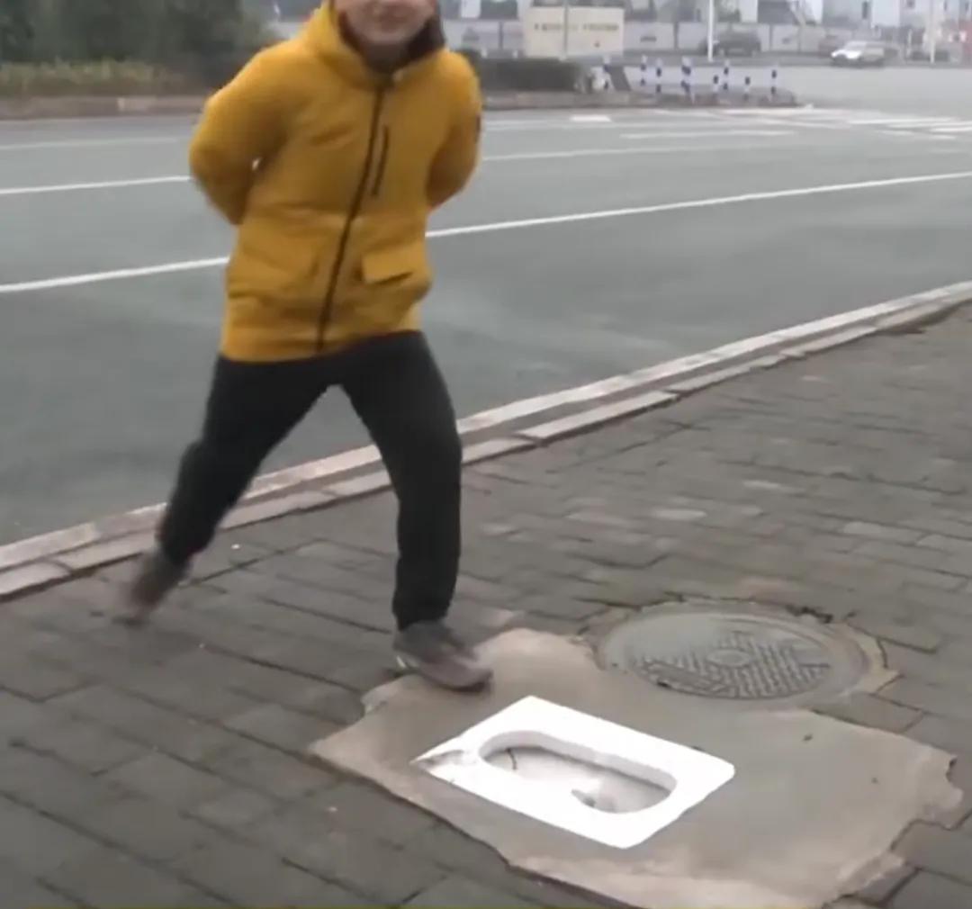 人行道上惊现蹲坑! 360度无死角,无遮挡! 这是给谁准备的? 真是让人百思不得其解……