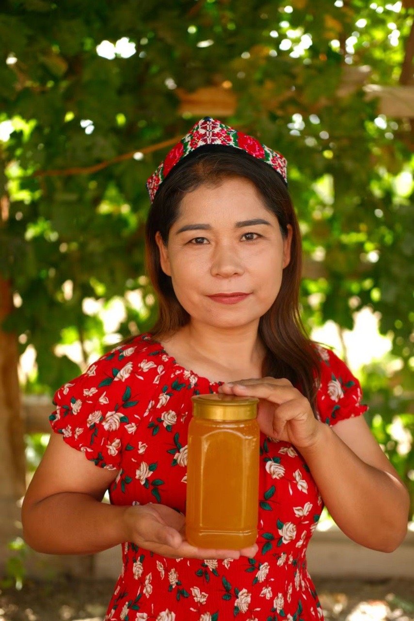 “见过蓝色的蜂蜜,但你知道新疆天然的罗布麻蜜是什么颜色吗?关注,也请关注,