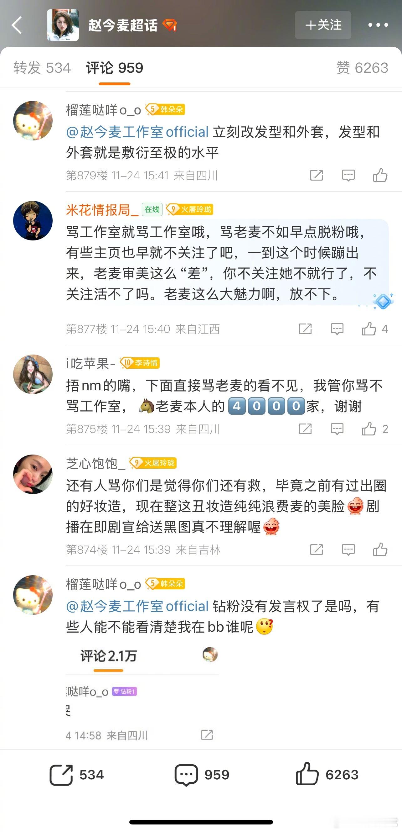 赵今麦工作室因为今天hi6妆造被粉丝麻辣