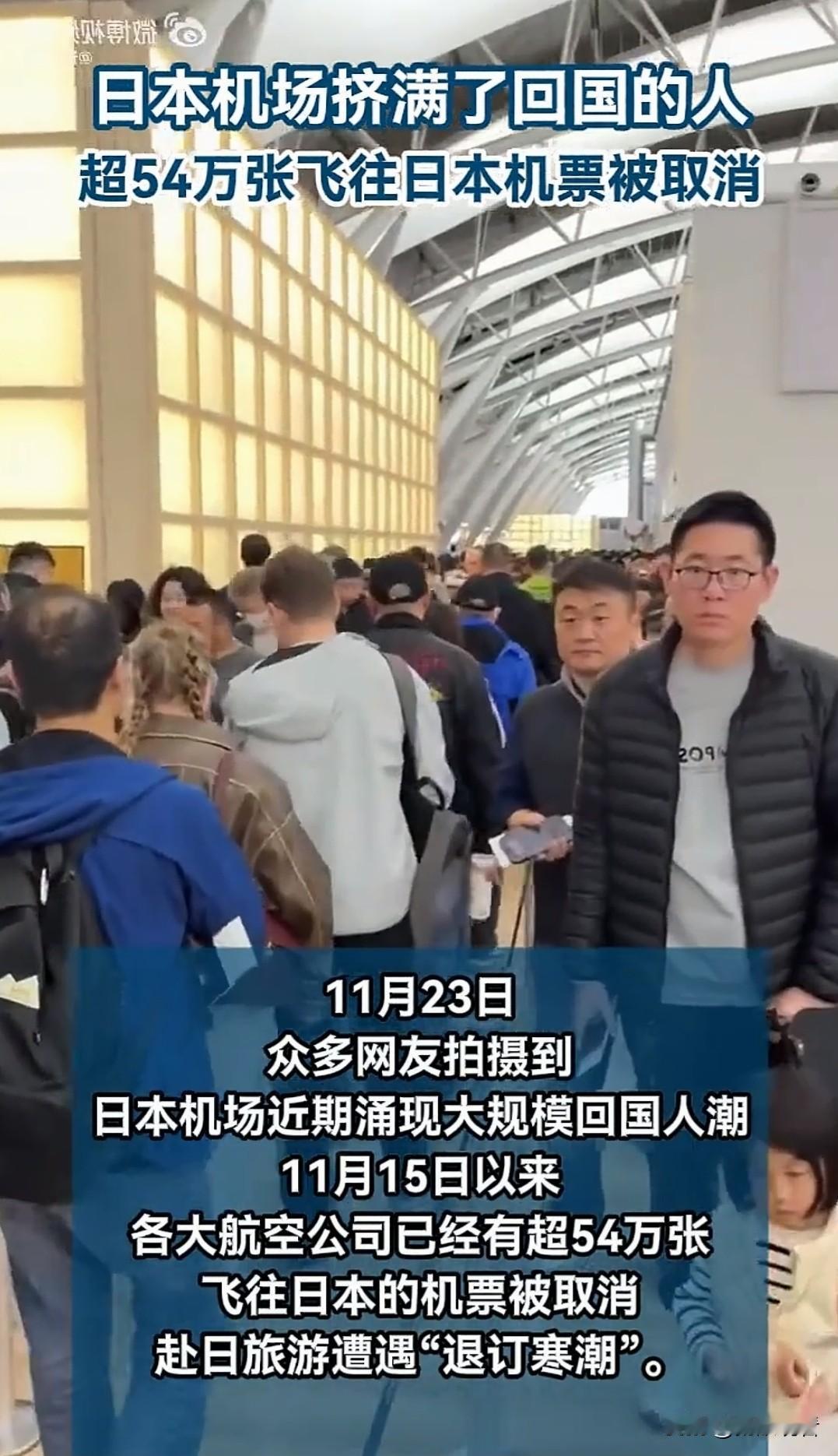 日本机场爆挤!国人扎堆回国像春运 近期日本成田、羽田机场彻底“沦陷”,国际出发厅全是拖行李箱的中国同胞,中文乡音满场飘,排队队伍绕候机楼两圈,行李箱堆成临时“长城”,热闹得和春运返乡没差📦 这波回国潮来得超猛!11月中旬起赴日机票取消单超54万张,东京飞上海、大阪飞广州等返程航线秒空,加价数倍都难抢近一周候补机位。核心是安全顾虑——日本社会治安波动,针对中国公民违法犯罪增多,再加上外交部预警、教育部建议,大家果断提归程。 日元贬值+物价飙涨(一碗拉面1500日元)、航班变动频+72小时核酸要求,留日同胞直呼“待不住”。好在国内8家航司开免费退改通道,缓解行程焦虑。机场里不管留学生、务工者还是游客,虽显疲惫,却藏不住“能回家”的期待,祖国永远是后盾❤️