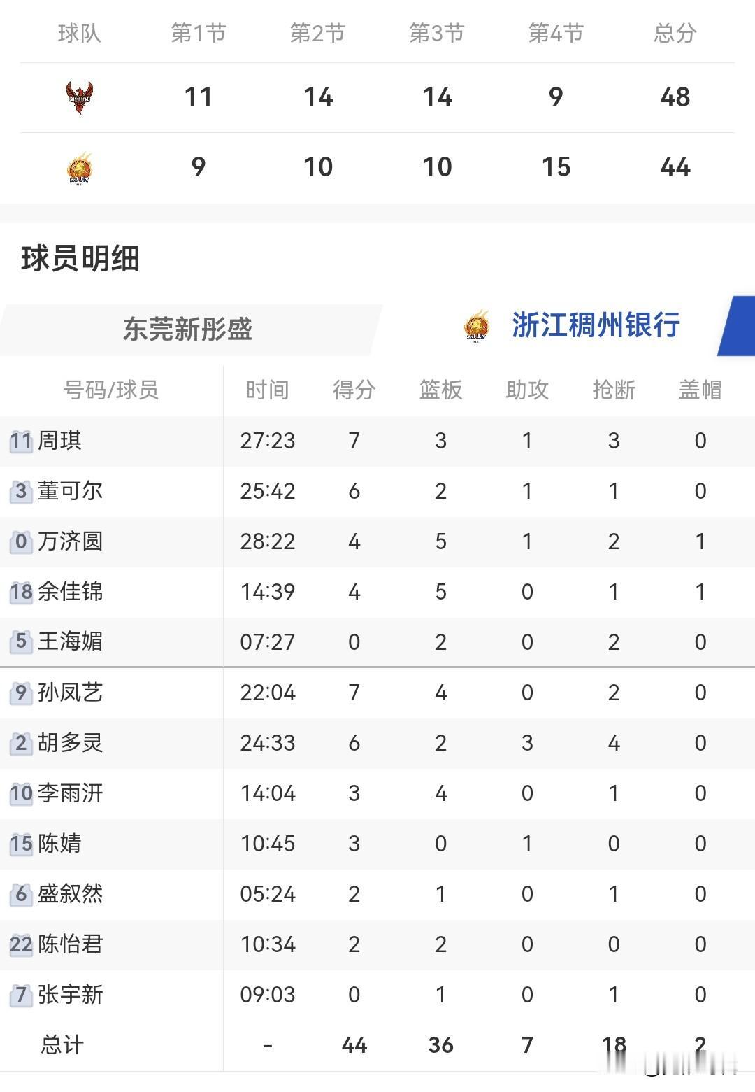 东莞女篮48-44浙江女篮 新人徐培林李雨妍首秀