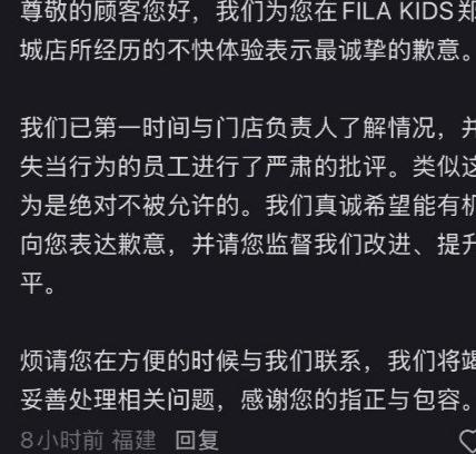 太膈应人!FILA店员暗戳戳 diss 顾客,买鞋嫌贵竟被偷偷备注,道歉还没诚意 郑州网友逛FILA儿童店买鞋,十分钟挑完付款,店员主动提议用券省了钱,本是顺顺利利的事,转头竟被店员背地里贴难听标签,换谁都得气炸。 网友带孩子进店,前后试了三双鞋,没墨迹没难缠,敲定款式后爽快结账,全程不到十分钟,店员还主动说能用券,帮着省了不少,怎么看都是省心顾客。 可谁能想到,店员转头把网友的客户添加截图发进会员群,备注里明晃晃写着嫌贵,三个标签凑一起扎眼得很,尤其是“买双鞋子都嫌贵”,满是看不起人的意思。 网友刷会员群时瞅见这备注,当场火冒三丈,直接在群里发问,买一双鞋到底有啥问题,凭啥背后嚼舌根贴标签,群里其他会员看了也炸锅,纷纷吐槽店员做法太过分。 店长见状赶紧出来致歉,说备注是想细致服务,没不尊重顾客,还提让顾客指证服务问题,这话听着就虚,背地里 diss 人,还好意思说重视服务,纯属睁眼说瞎话。 致歉说得没半点诚意,没提怎么整改,没说怎么补偿顾客,光打嘴炮找借口,压根没意识到错在哪,分明是没把顾客感受放眼里,敷衍得不能再敷衍。 网友气不过把这事曝光,11月24号记者联系FILA客服,客服竟说不清楚情况,只说登记反馈,还给了门店工作人员电话,遇事只会甩锅推责,没半点担当。 记者接着打门店电话,工作人员只含糊说在积极处理,说会让领导回电,结果直到曝光都没等来回复,遇事躲躲闪闪,没一点解决问题的态度,让人越看越气。 后来FILA消费者体验官方号出来致歉,说批评了失当员工,还想当面跟顾客道歉,承诺会改进服务,让顾客联系他们妥善处理,总算有了点正视问题的样子。 可网友心里的膈应消不了,花钱买东西是图开心,不是来受气的,进店消费没挑事没难缠,反倒被店员背后嫌弃,这种服务态度,换谁都接受不了。 说白了,店员就是嫌顾客没买多、没花够钱,嫌利润少,才背地里乱贴标签,忘了自己是服务行业,顾客不管花多花少,都该被尊重,凭啥用消费多少评判人。 服务行业最该讲尊重,顾客花钱消费,买的不只是商品,还有服务体验,店员背地里 diss 顾客,既丢了职业素养,也砸了品牌口碑,纯属搬起石头砸自己脚。 不少网友看了这事都有共鸣,逛店时或多或少遇过类似情况,店员看人下菜碟,见消费少就冷脸,见花得多就热络,势力得很,让人心里不舒服。 FILA作为知名品牌,本该管好员工,做好服务,可连基本的尊重顾客都做不到,店员职业素养堪忧,品牌监管也不到位,出了事还敷衍拖延,迟早凉在服务上。 花钱消费不分高低,不管花多花少,顾客都该被平等对待,服务行业没了尊重,再大牌的品牌也留不住顾客,口碑砸了想挽回就难了,这都是实实在在的道理。 消费不分贵贱,尊重才是底线,服务没了诚意,再大牌也撑不起口碑,不把顾客放眼里的品牌,迟早被顾客抛弃。