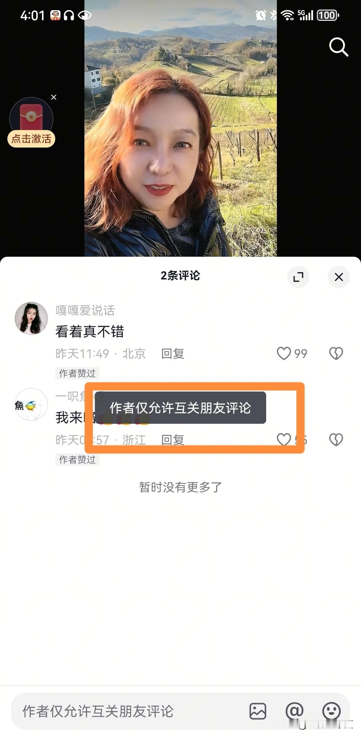 意大利潮妈最新视频,限制了评论, 说是也出去旅游几天, 这是害怕了,躲了? 为什么关评论呢?