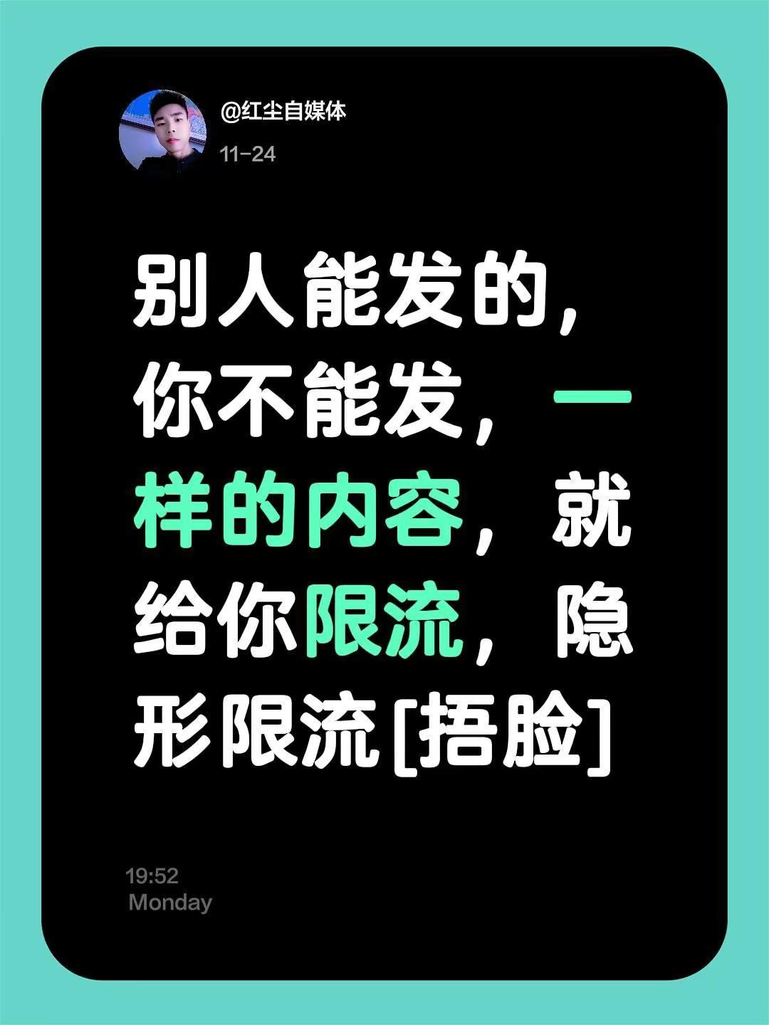 我评论了@国红 的作品:别人能发的,你不能发,一样的内容,就给你限流,隐形限流[捂脸]