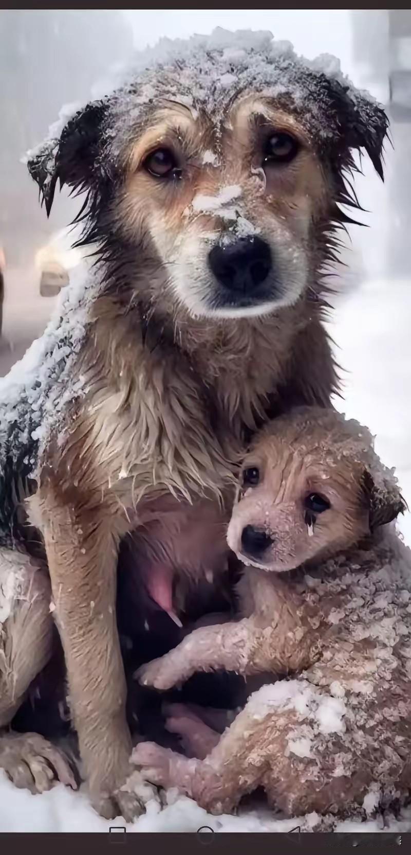 看到这个流浪狗和它的孩子在冰天雪地里挨冻受饿的样子,心里顿时就生了怜悯之心,真是好可怜,同样都是狗,有的被主人宠着养,住在楼房里,吃喝不愁,陪着主人玩,而有的流浪狗,不仅吃不上,喝不上,随时还面临很多危险,虽然都是狗,但是完全不一样,由此不仅想到了人的命运!