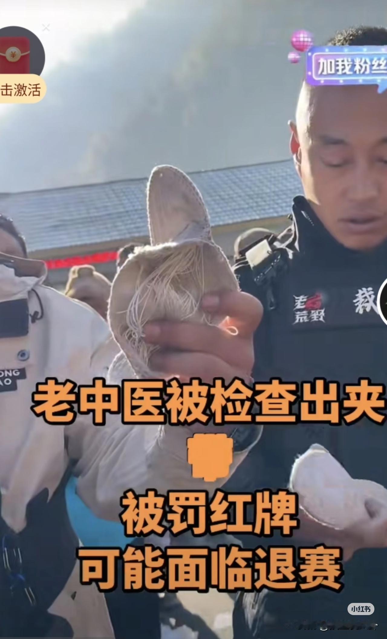 不出意外,意外还是发生了 七星山荒野求生又一人退赛 再次却是被“红牌”罚下的,他就是人气选手“老中医”,因为主办方在他的加厚鞋垫里发现了线! 他当时说自己缝的,事后直播又说是粉丝送的! 更让人想不到的是他退赛后开直播说林北偷他的猕猴桃! 还说节目组有黑幕,故意搞他。 这是和节目组撕破脸的节奏呀! 荒野求生比赛