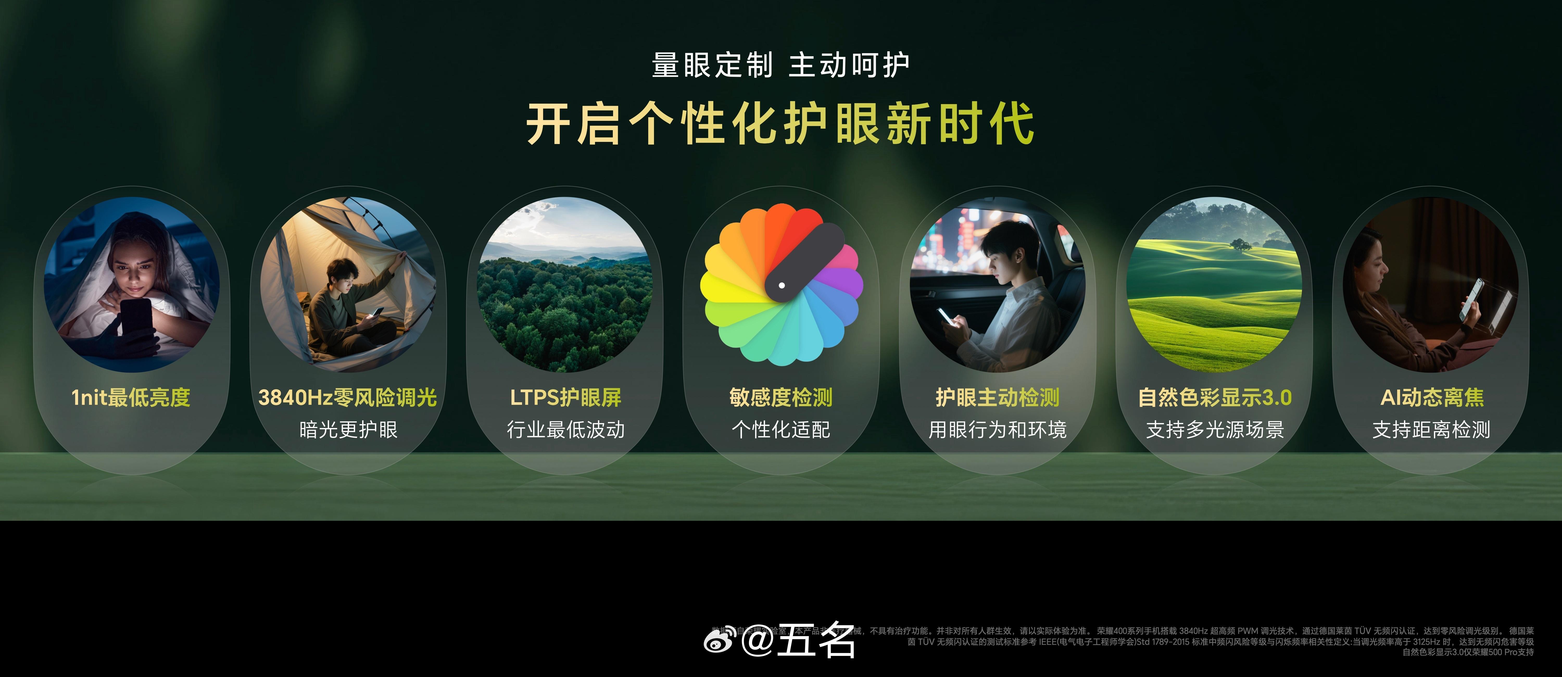 系列超多旗舰配置,打造超级体验!荣耀500全系搭载绿洲护眼屏,支持包括照明闪烁检测、AI视觉健康管理、AI动态离焦等九大荣耀绿洲护眼特性,最强护眼看荣耀!荣耀500 Pro结合自研射频增强芯片HONOR C1+与骁龙旗舰芯片能力,针对游戏、演唱会、高铁、地铁四大高发场景进行专项优化,保障网络始终稳定在线。档位首次搭载AI键,支持自定义快捷操作。更联合“奶龙”IP深度定制主题、铃声与YOYO形象,开启萌趣交互新体验。