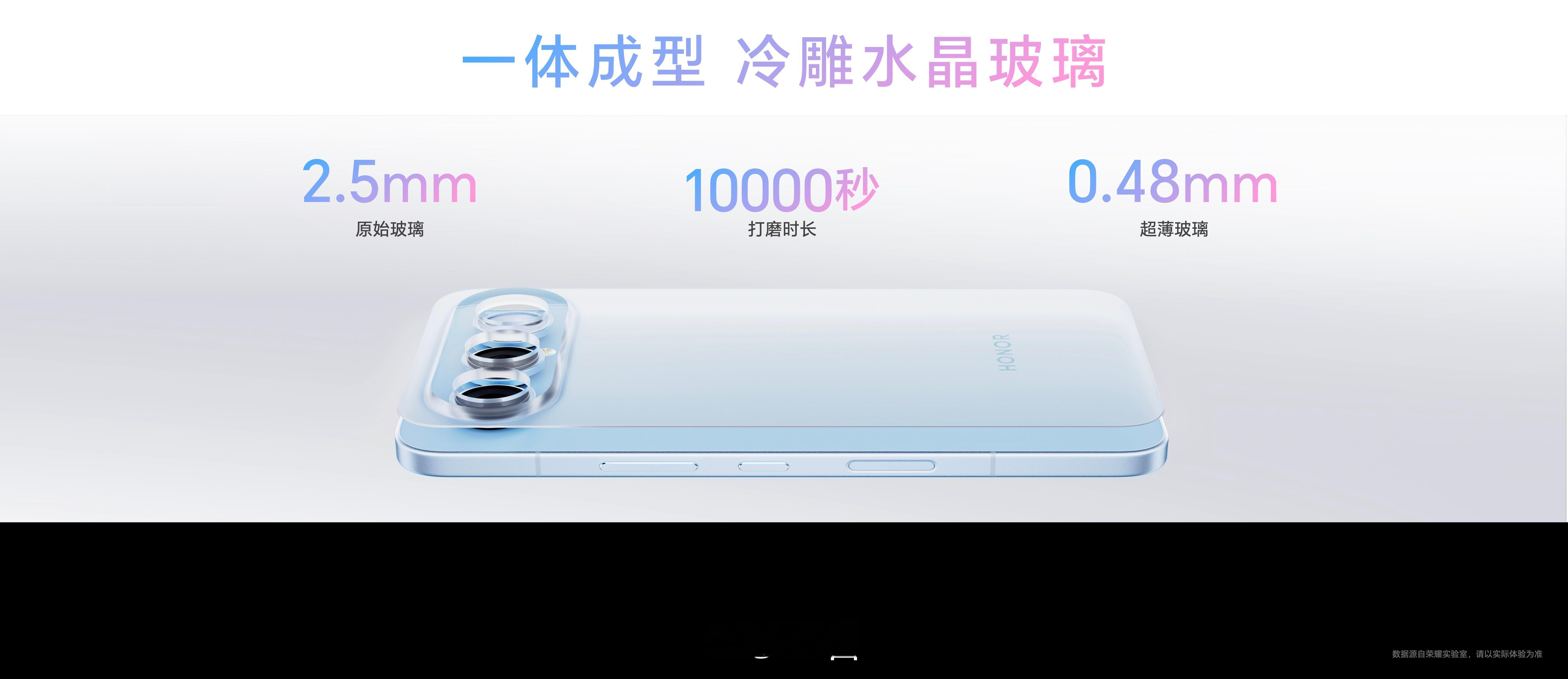 系列全新外观设计,打造超美水晶小直屏!荣耀500系列推出海蓝宝、星光粉、月光银、曜石黑四款“好运水晶配色”,是更适合年轻人的超美水晶小直屏手机!背板采用一体冷雕工艺,历经40多道工序,在玻璃上实现了的96%超高透光率,带来通透高级的背板美学。荣耀500系列以水晶岛镜头模组设计演绎简约美学,镜头布局精致有序。得益于架构重塑,手机在仅7.75mm的轻薄机身中,巧妙容纳更大电池,让设计与续航完美兼得,同时更带来横竖持握皆舒适无遮挡的舒适体验。
