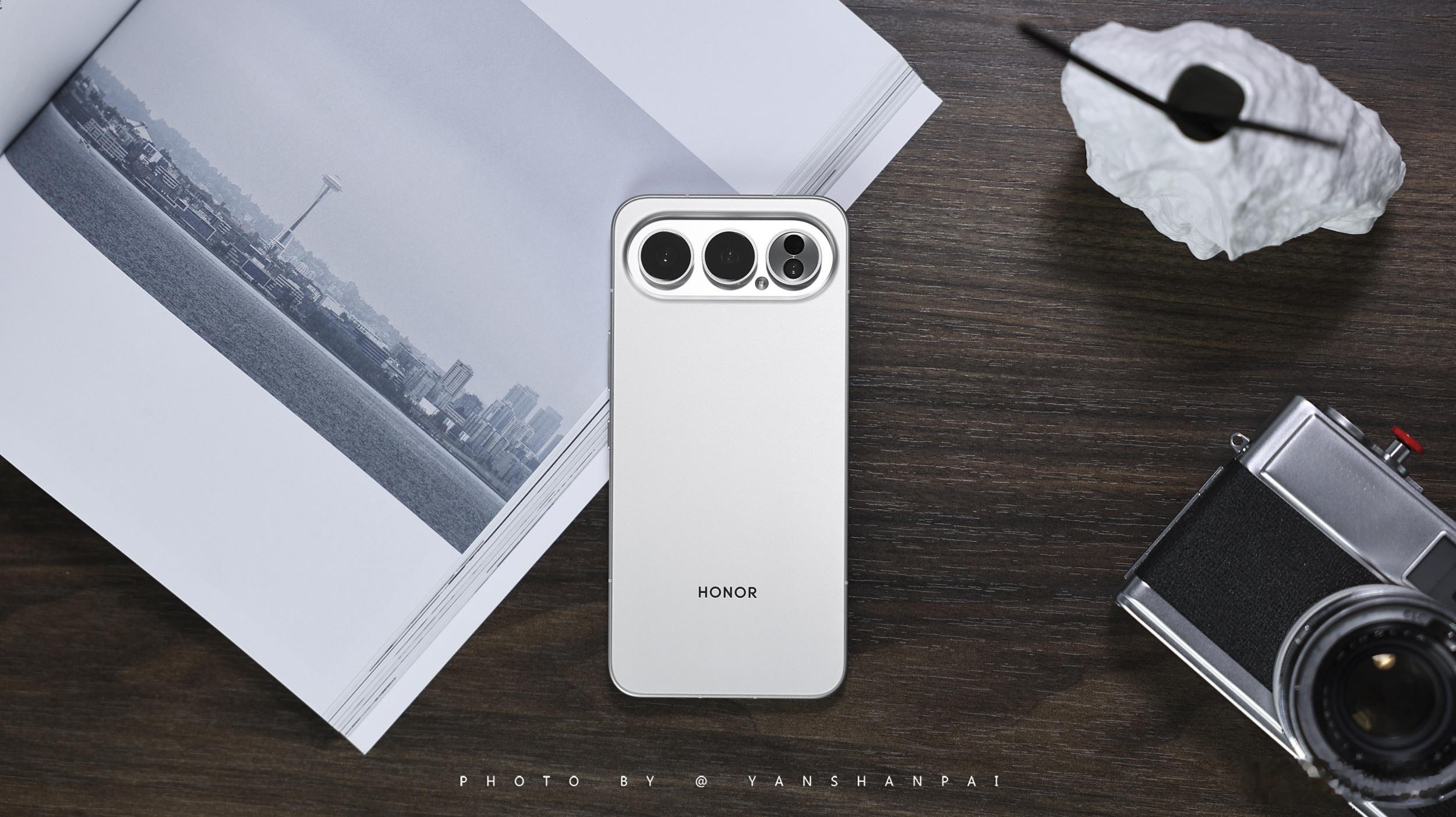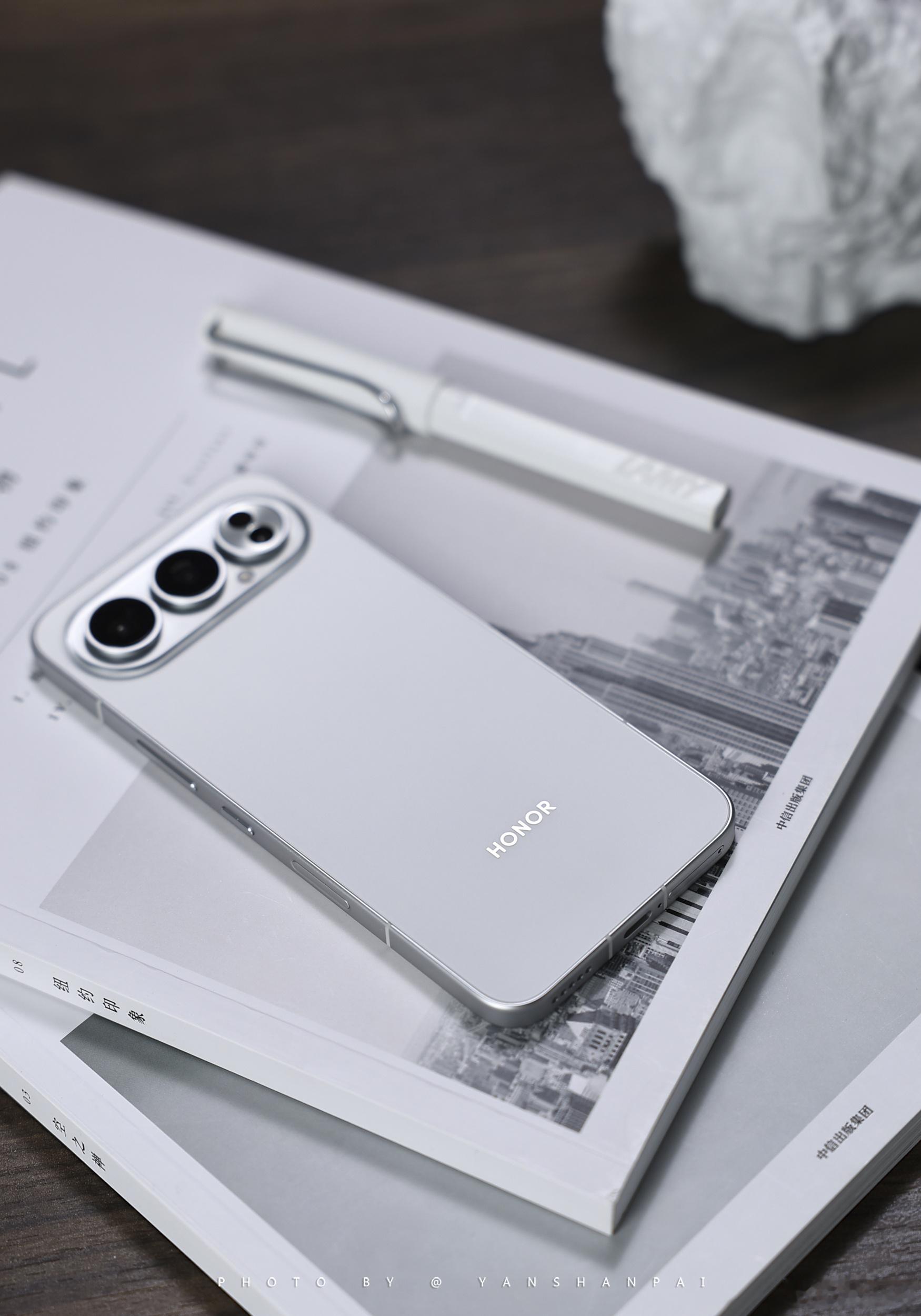 燕山派「荣耀500 Pro」图赏这次的荣耀500 Pro我是真喜欢!新颖横向镜头Deco辨识度拉满,而且使用时也不会有硌手。更绝的是,全系采用iPhone同款一体成型冷雕玻璃工艺,再配合直角金属边框,真机非常有质感。颜值高的同时,荣耀500 Pro还有2亿主摄、超声波指纹、IP68/68/69满级防水、8000mA青海湖电池等等旗舰同款配置。