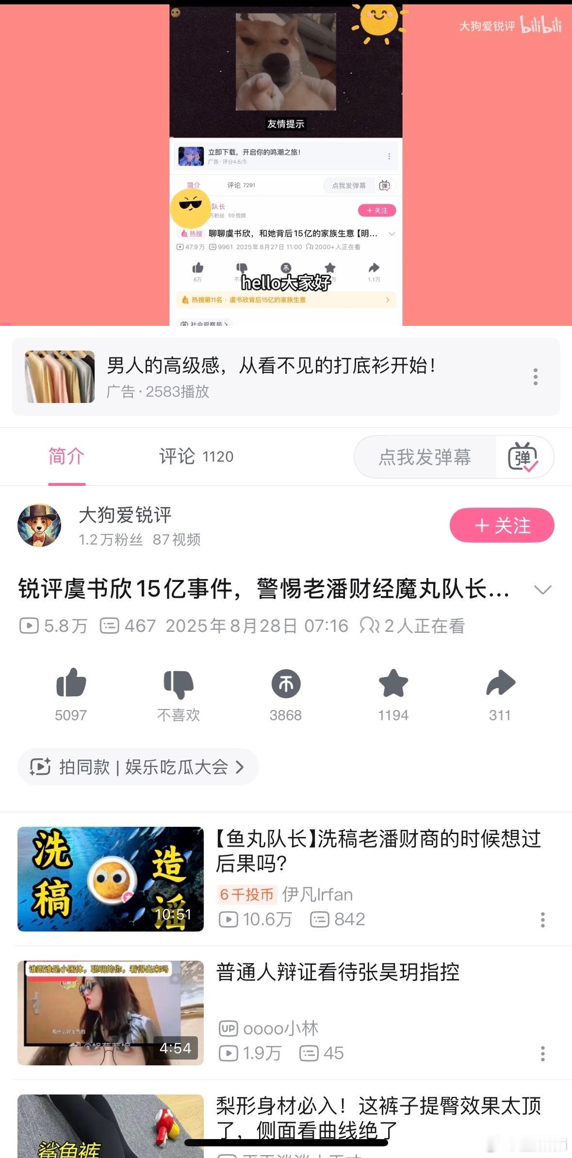 B战前脚把 脑洞乌托邦关于🐊的视频删了,今天就开始给🐊澄清的视频推流,这个视频甚至是8月份的,评论区都有最近的路人不明真相看了视频以为🐊被黑了的