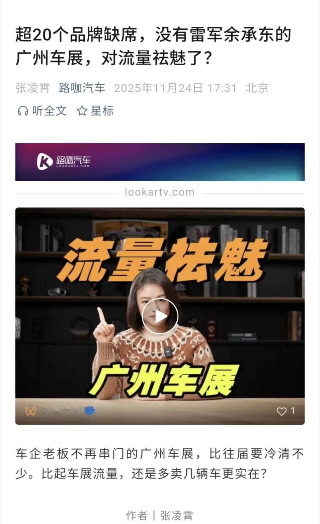 流量祛魅 今年车展应该是车企流量祛魅的开始吧。 特别是高管亲自带货,搞流量。 去年各个车企高管纷纷上网开号搞流量,给车企代言,陷入流量焦虑。 然而最近小米汽车的“流量副作用”应该让他们清醒了很多。 流量是把双刃剑,弄得好是好事,出现负面是坏事,依我看在网上保持不咸不淡的存在感,才是最好的。【来自懂车帝车友圈】
