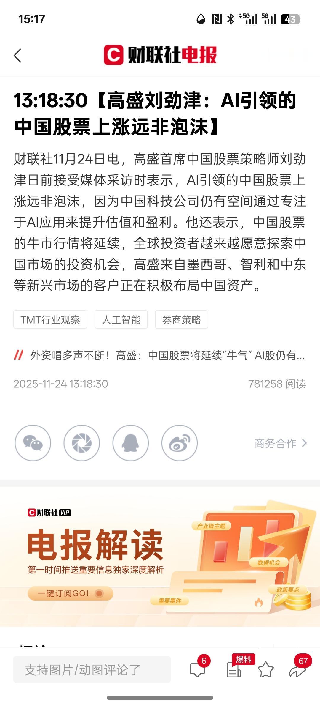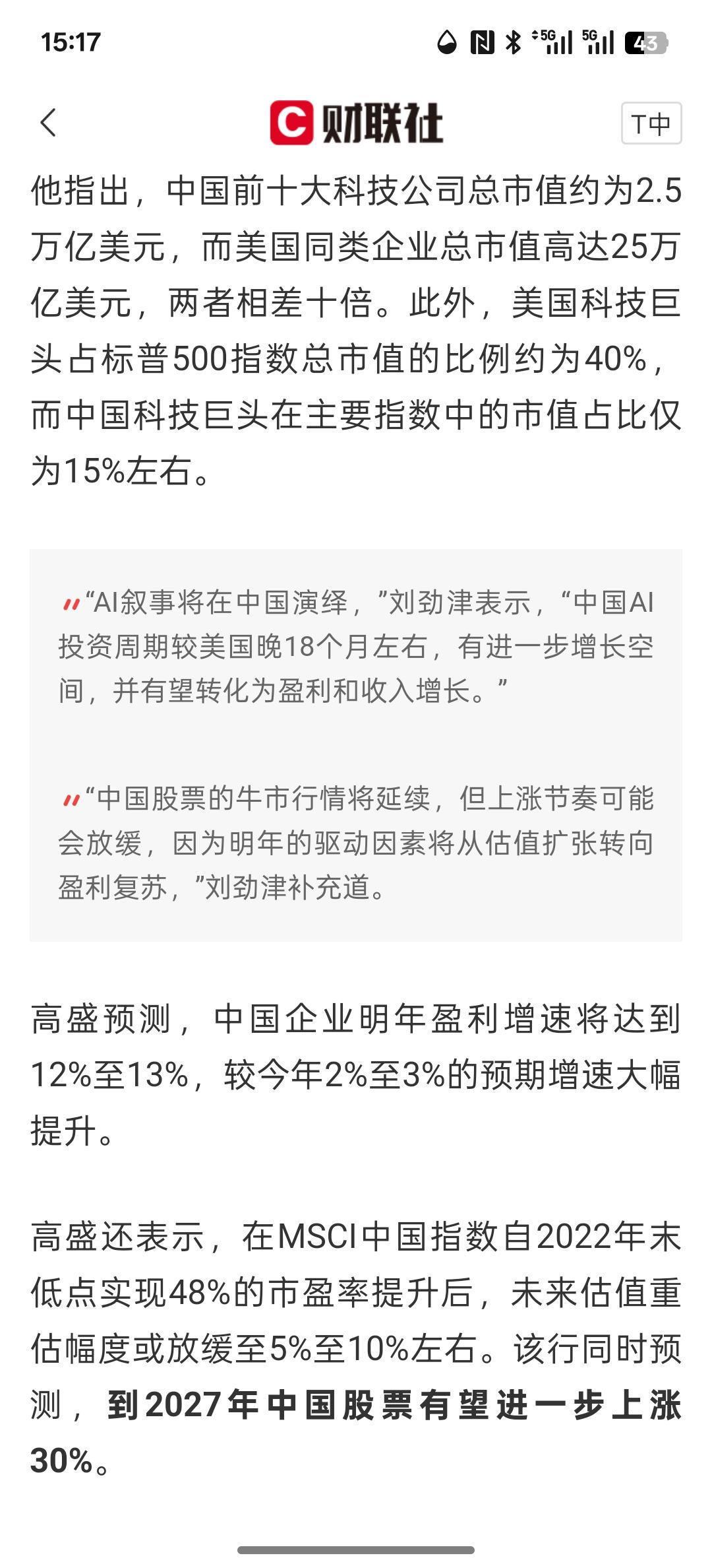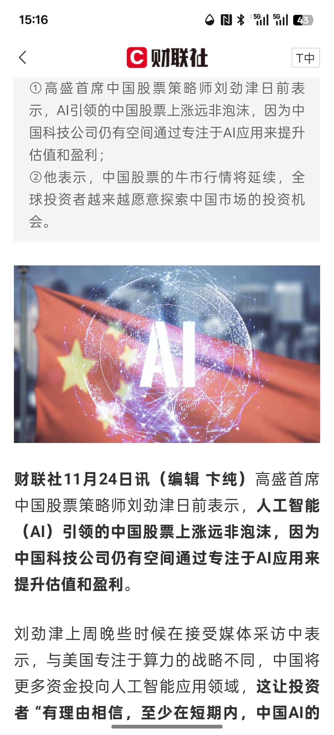 外资唱多声不断!高盛:中国股票将延续“牛气” AI股仍有上涨空间,而且中国AI人工智能引领发展科技并不是泡沫,中国的AI人工智能科技通过应用场景的落地,专注于这些科技的发展,未来会实现更多的盈利空间!而且中国股市将延续牛市行情走势,来自海外更多的投资者,包括智利,中东的,墨西哥的。这些投资者韩国的投资者加速购买中国资产!中国资本市场正在大量的吸引外部资金来到中国市场投资
