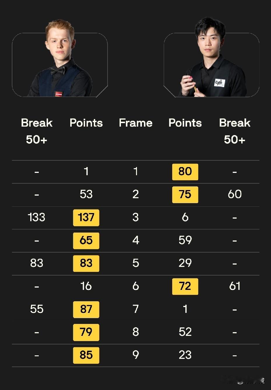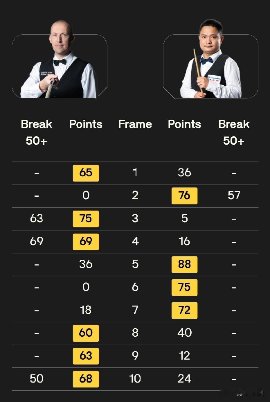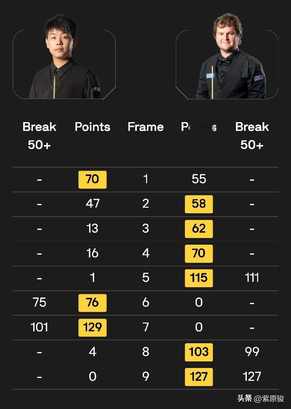 英锦赛资格赛第二轮战报,今天17点30分开始的比赛,只有龙泽煌6-4胜刘文炜,其余3场外战全部失利。张家玮3-6负于齐津斯,许医尘4-6不敌大卫·利里,巩晨智3-6负于海菲尔德。 张家玮有点悲催,开局2-0领先,可惜后劲不足,3-6败北,其中第4局,59-65告负。英锦赛资格赛出局,对本赛季要保级的张家玮来说积分增加不多,保级将更加艰难。 许医尘4-6负于大卫·利里。许医尘1-3落后,之后连赢3局4-3反超,可惜最后连丢3局。 巩晨智1-4落后追了两局,但之后又丢两局,3-6负于海菲尔德。现在看巩晨智比赛很难受,小巩本赛季信心缺乏,打球犹豫不决,本赛季就没有拿到多少积分,快到保级线了,就是冲不过去,再不调整,形势不见得乐观。 最后结束的中国德比,龙泽煌6-4胜刘文炜,其中第10局,龙泽煌60-57逆转。 22点30分资格赛第二轮继续进行,姚朋成迎战罗比·威廉姆斯,江俊对阵梅尔滕斯,周金豪迎战斯坦·穆迪。