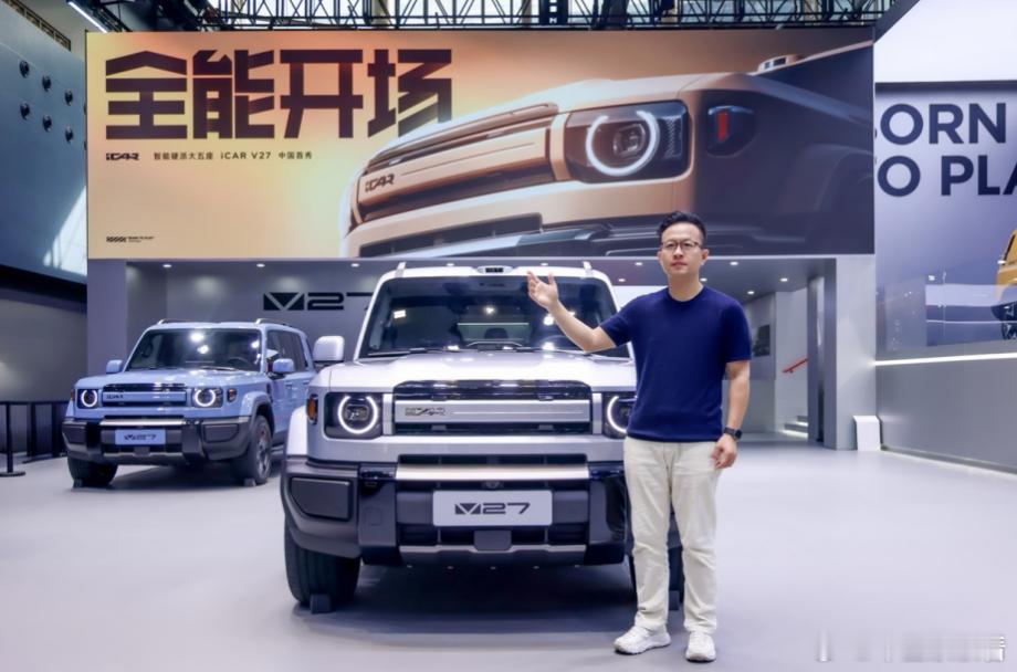 iCAR V27终于在广州车展首秀了。这辆车的传播节奏很怪,先在中东(迪拜)完成首秀,然后再拿到国内展出。其实目的很明显,就想让大家知道这是一款有全球车水平的大玩具。说是大玩具也不准确,因为这次iCAR品牌事业部总经理苏峻说,这是一款真正的全能车。从尺寸上讲,V27的级别并不低,4909(小书包版)/5055(备胎版)x1976x1894mm,轴距2910mm,依旧是四轮推向四角的设计,意味着内部空间要尽量最大化,得房率达到69.9%。“星际舷窗”双天幕,而且在顶棚集成氛围灯和拓展功能是一大创新点。主驾座椅支持六向调节与三档通风加热,全车50处储物空间,透露着实用。这次的重头戏就是公开了新车的动力。全系增程电动,系统采用1.5T增程专用发动机,热效率45.79%。全系34.3kWh磷酸铁锂电池,纯电续航200km+,综合续航1200km+。高配版前后双电机,零百加速5秒级。另外,辅助驾驶采用的是地平线HSD系统,具备城市NOA能力。总体来说,V27确实和现在市场上的全能方盒子差不多。就算你不是越野玩家,看到这个造型,感受一下方盒子的驾驶姿态也会很开心。至于真正的越野玩家,我们也咨询了苏峻老师本人,他表示这个车玩沙漠,完全没有问题。另外根据确切消息,这台车将于12月启动盲订,并于2026年一季度全球正式上市。(原创/鹏宇)